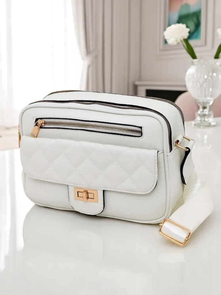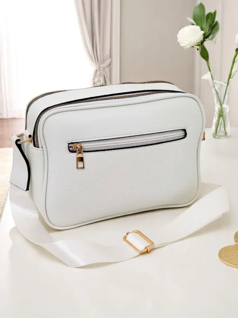 - Kompaktowa torebka z eko skóry z subtelnym tłoczeniem. Dwie komory i regulowany pasek łączą styl i funkcjonalność – idealna na co dzień i wieczorne wyjścia.