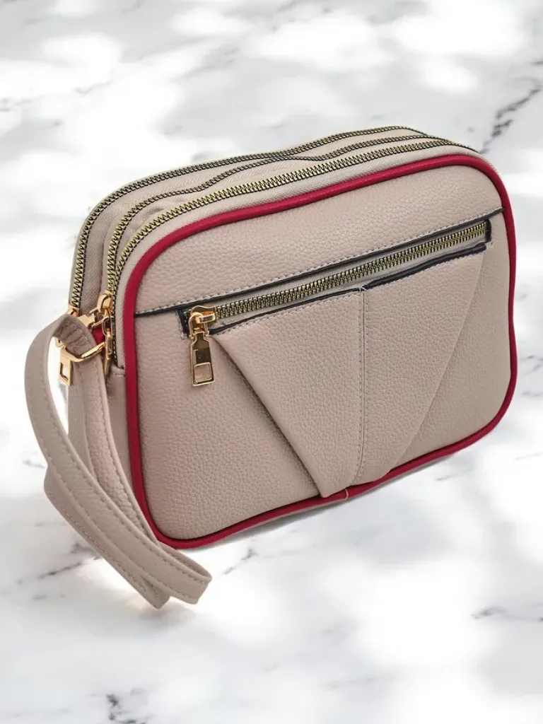 - Damska mała torebka zapinana na zamek, wykonana ze skóry ekologicznej.