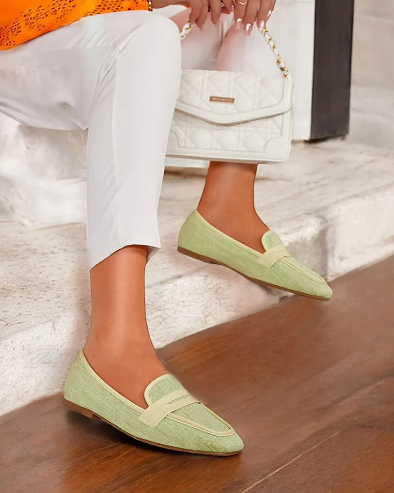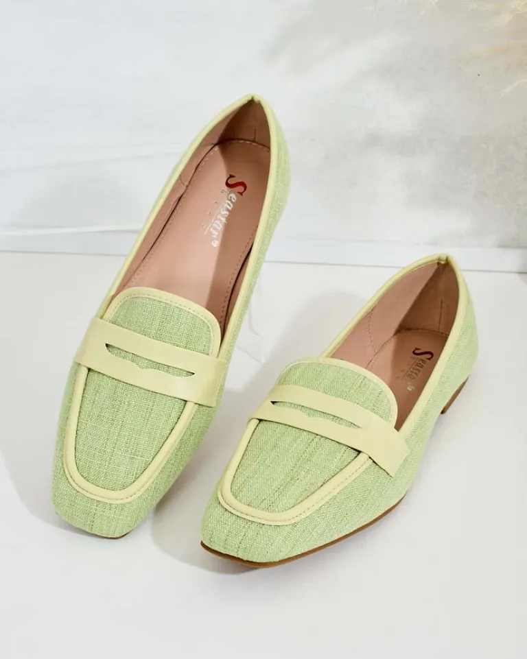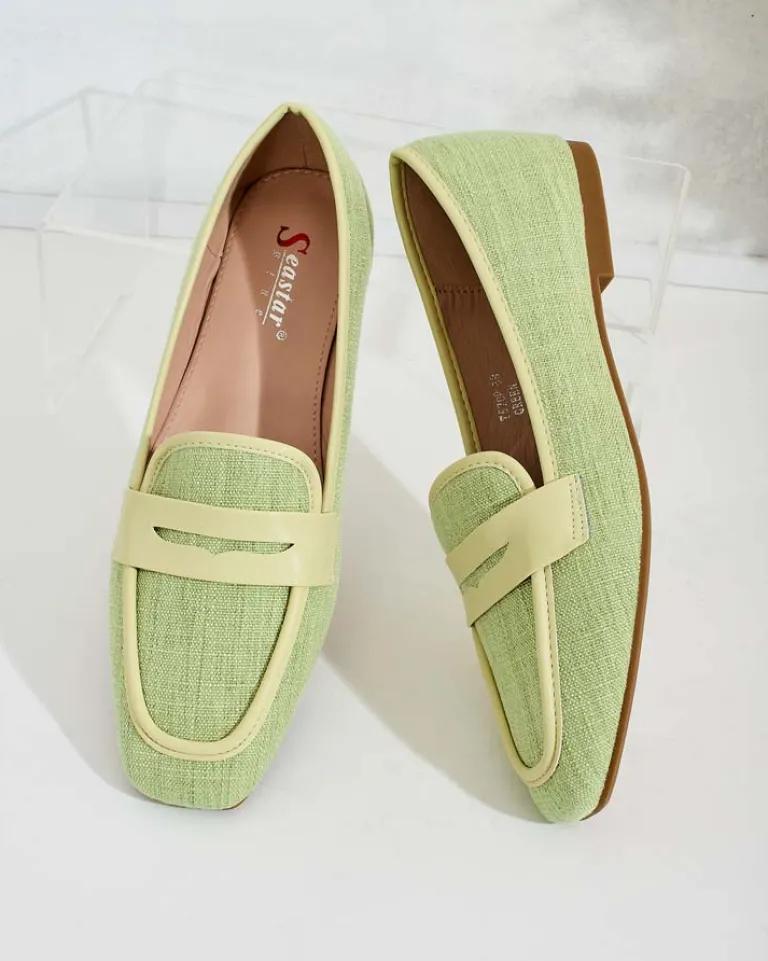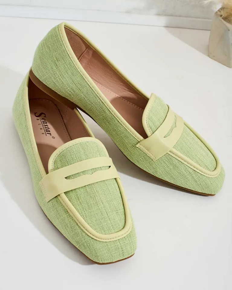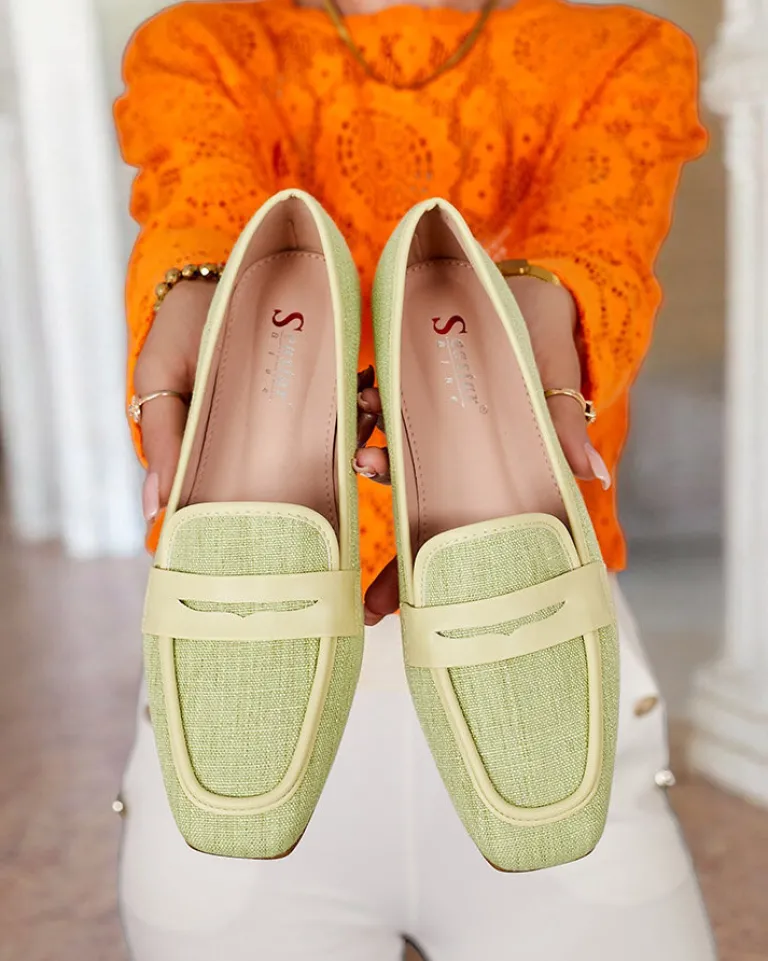 - Przepiękne damskie półbuty typu mokasyny na płaskiej podeszwie. Model w tylu casual i jest wykonany z tkaniny i eko skórzanej wkładki. Nosek jest zaokrąglony. Idealna baza dla wielu codziennych looków!