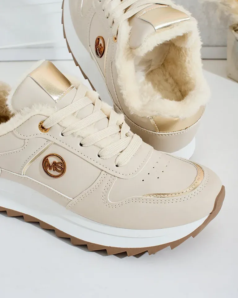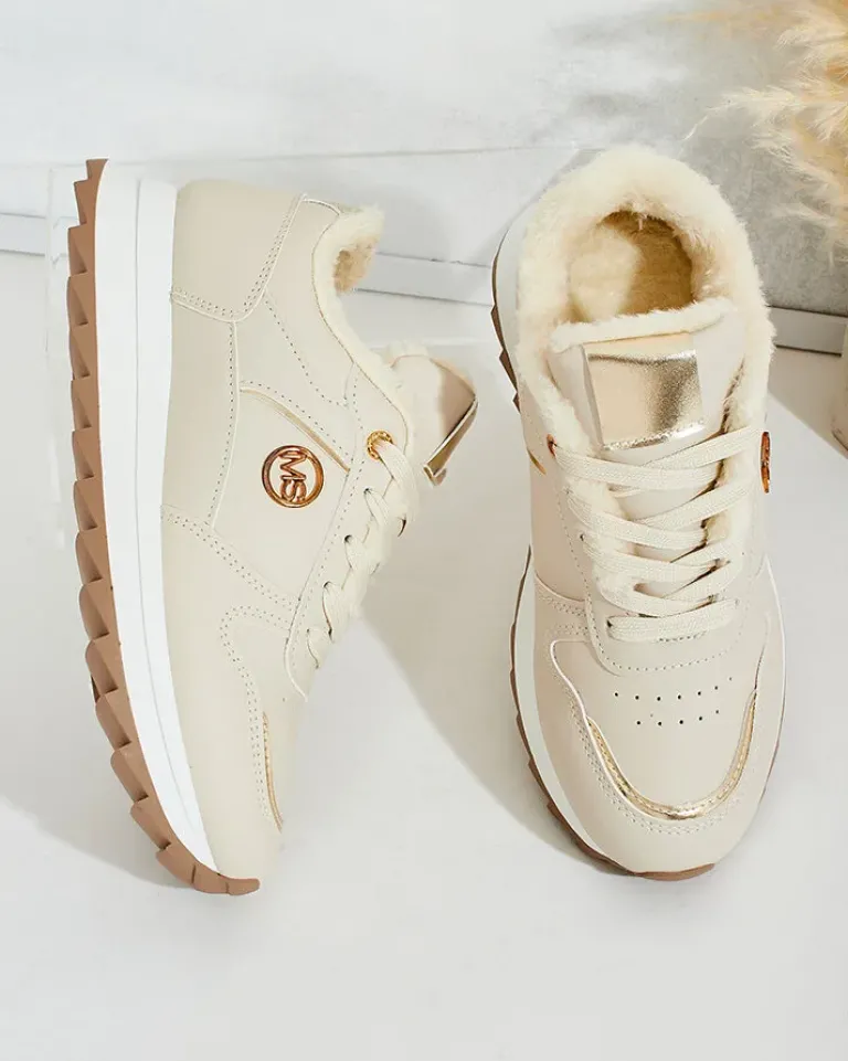 - Sportowe sneakersy damskie na grubszej podeszwie. Cholewka sznurowana, wykonana ze skóry ekologicznej. Wnętrze w całości ocieplone futerkiem. Idealne na chłodniejsze dni!