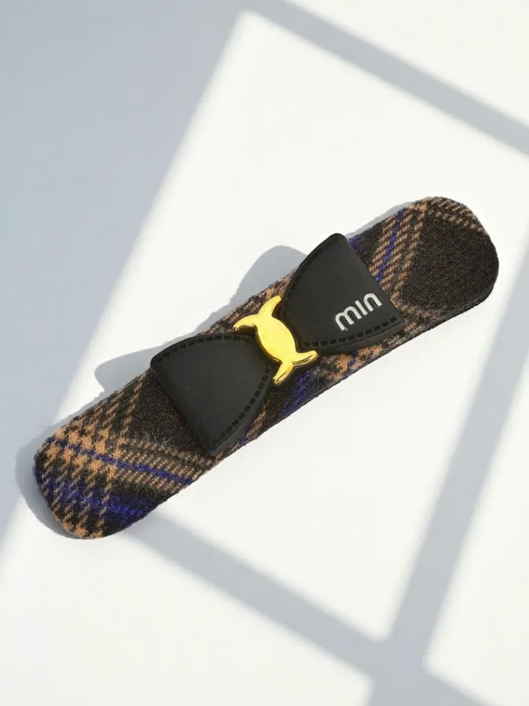 - Urocza spinka do włosów w kratkę, ozdobiona kokardką. Stylowy dodatek, który doda wdzięku każdej fryzurze – idealna do codziennych stylizacji i romantycznych upięć.