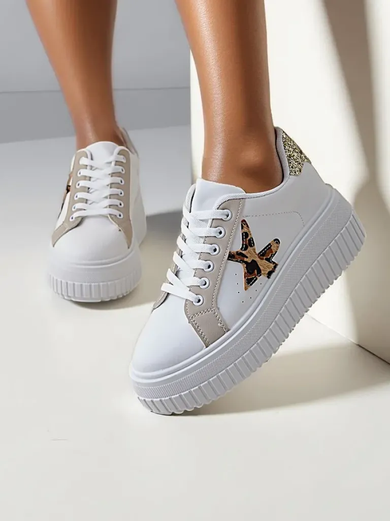 - Fenomenalne sneakersy damskie na platformie – perfekcyjne połączenie stylu i komfortu. Obuwie wykonane z eko skóry. Model sznurowany, posiada tkaninową wkładkę. Idealne dla aktywnych osób!