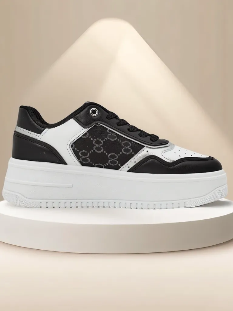 - Damskie sneakersy wykonane z eko skóry na platformie. Model sznurowany, posiada tkaninową wkładkę. Idealne do tworzenia stylowych outfitów!