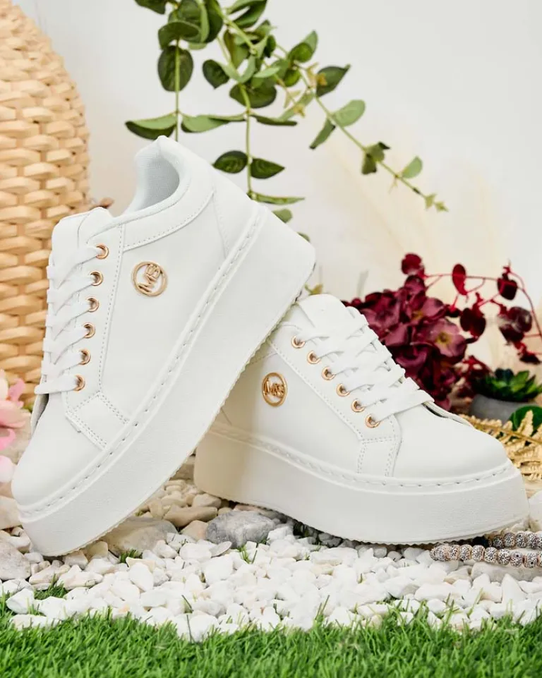 - Sneakersy damskie na platformie, wykonane ze skóry ekologicznej to perfekcyjne połączenie stylu i komfortu. Model sznurowany, posiada tkaninową wkładkę. Idealne dla aktywnych osób!