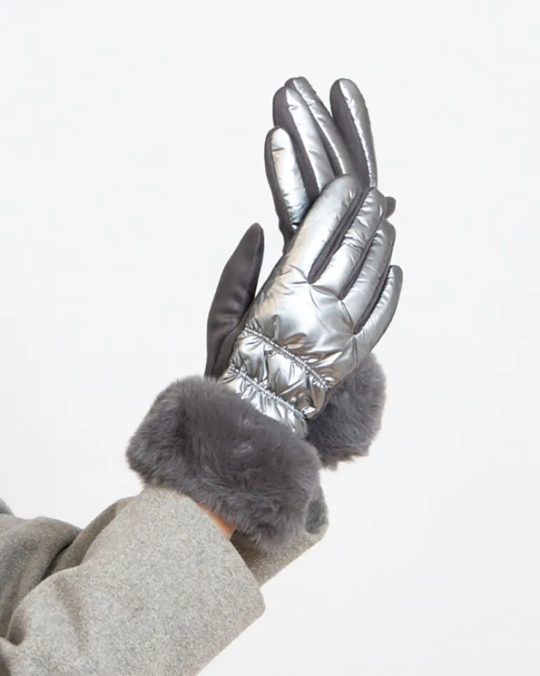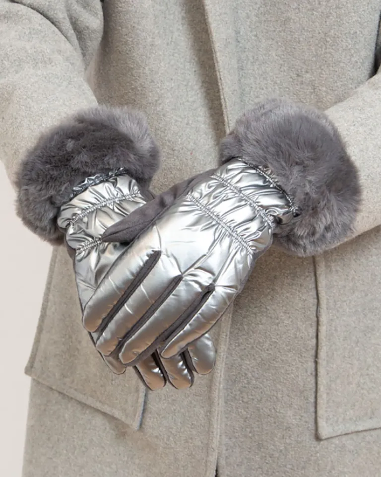 - Cieplutkie rękawiczki wykonane z materiału a’la cerata, po wewnętrznej stronie pokryte eko-zamszem. Wewnątrz miękka, futrzana podszewka, w dolnej części również futerko. Idealne na mroźne dni!