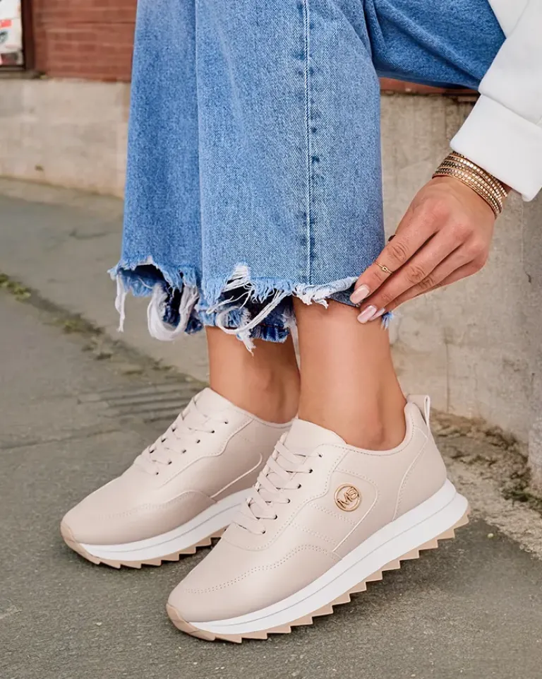 - Sportowe sneakersy damskie na grubszej podeszwie. Cholewka sznurowana, wykonana ze skóry ekologicznej. Wnętrze wykonane z przyjemnej tkaniny. Idealne na chłodniejsze dni!