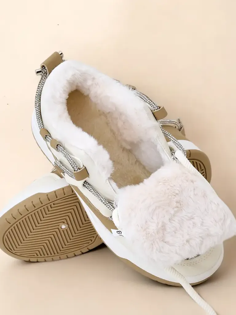 - Damskie ocieplane buty sportowe typu sneakersy na płaskiej podeszwie. Model wykonana z eko skóry. Sznurowana cholewka posiada cekinową ozdobę. W środku miękkie futerko. Super dodatek do twoich zimowych outfitów w stylu casual!