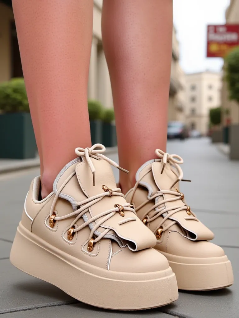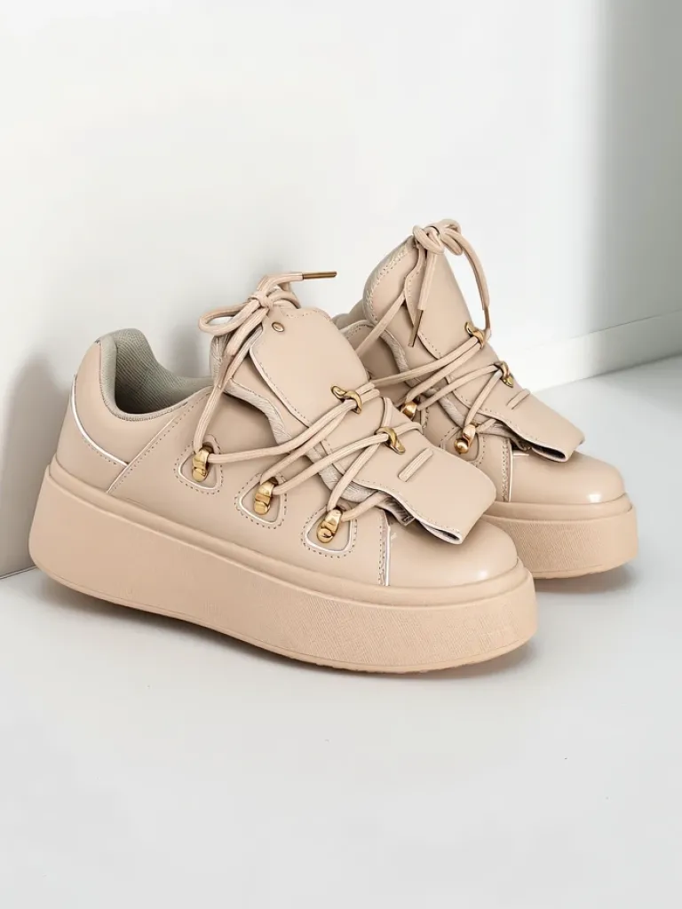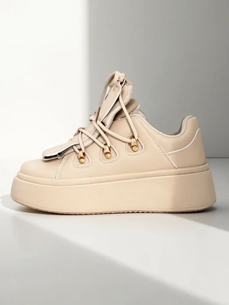 - Sportowe sneakersy damskie na grubszej podeszwie. Cholewka sznurowana, wykonana ze skóry ekologicznej. Wnętrze wykonane z przyjemnej tkaniny. Model posiada ozdobny język. Idealne na co dzień!