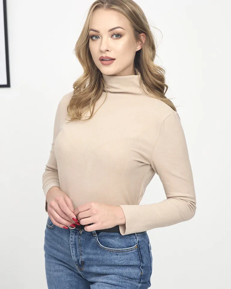 - Wyjątkowy jednokolorowy sweter damski półgolf, wykonany z przyjemnej i miękkiej tkaniny. Produkt o regularnym kroju, posiada długie rękawy. Idealny wybór do casualowych outfitów! UWAGA: Dokładność pomiaru (+/-) 1 cm.