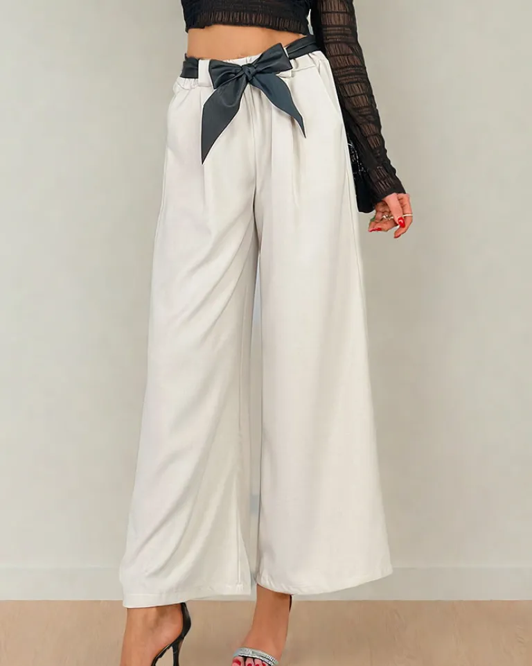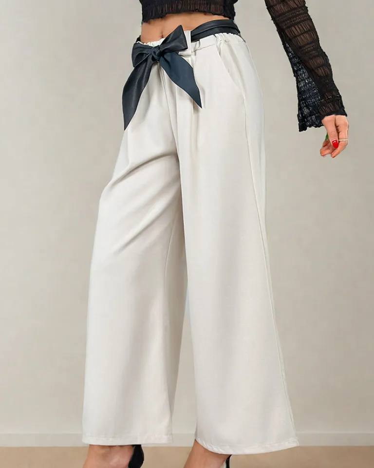 - Rewelacyjne szerokie spodnie wykonane z lekkiej tkaniny, model posiada gumę w pasie. Dodatkowo pasek w zestawie. Must have w Twojej szafie! UWAGA: Dokładność pomiaru (+/-) 1 cm.