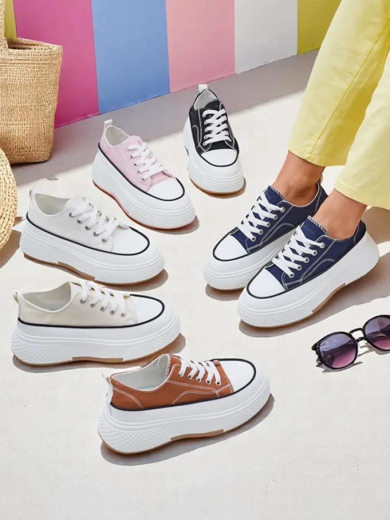 - Stylowe trampki damskie wykonane z materiału tkaninowego. Model na wygodnej platformie. Cholewka jest sznurowana. Świetne do tworzenia casualowych outfitów!