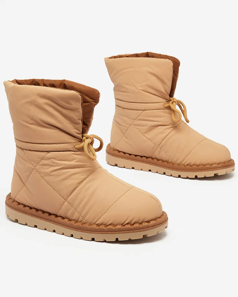- Damskie obuwie typu śniegowce z cholewką wykonaną z materiału a’la cerata. W środku ocieplenie w formie futerka, obuwie wsuwane i posiada ściągacz. Idealne na chłodniejszą porę roku!