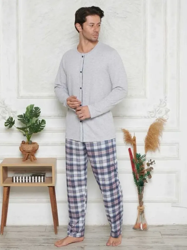 - Rewelacyjna piżama męska wykonana z materiału bawełnianego. Model posiada długie rękawy oraz nogawki. Góra zapinana na guziki. Komfort i elegancja w jednym!