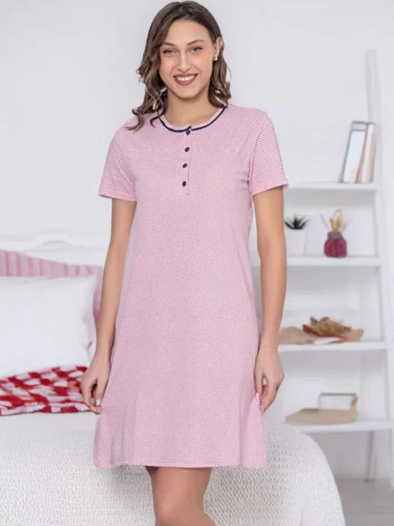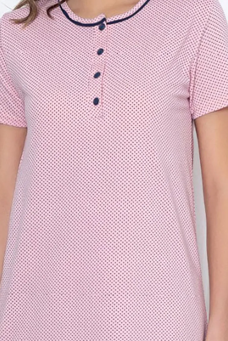 - Bardzo wygodna koszula z krótkim rękawem. Wykonana ze 100% bawełny oraz wykończona ozdobnym printem. Model posiada okrągły dekolt z ozdobnymi guzikami. UWAGA: Dokładność pomiaru (+/-) 1 cm.