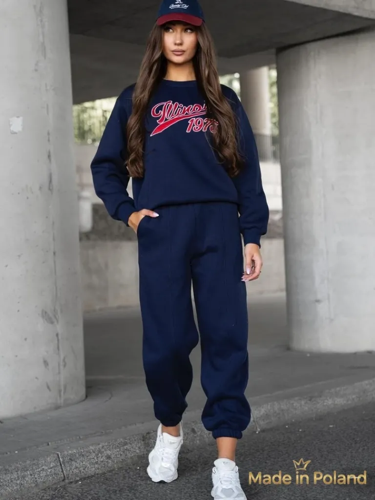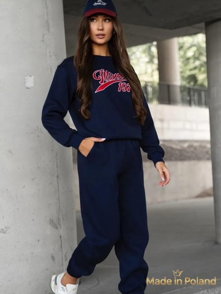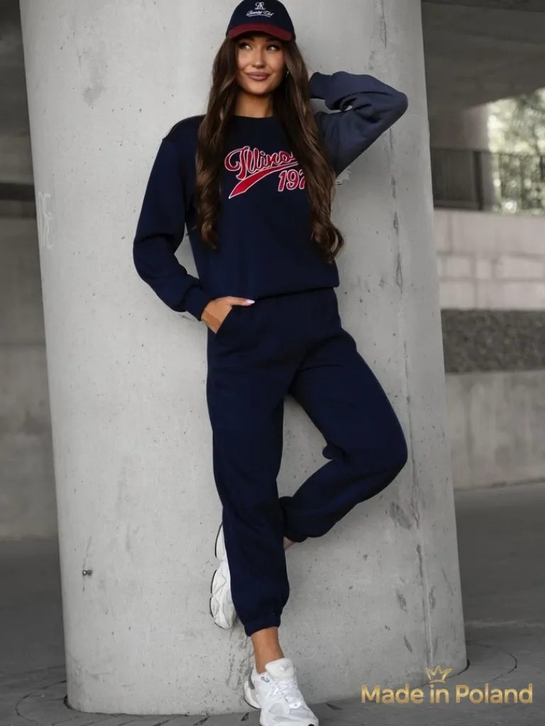 - Damski komplet dresowy wykonany z przyjemnego materiału bawełnianego. Bluza z ozdobnymi napisami. Długie spodnie z gumą w pasie i na nogawkach, z 2 kieszeniami. Poczuj styl w tym wspaniałym komplecie!