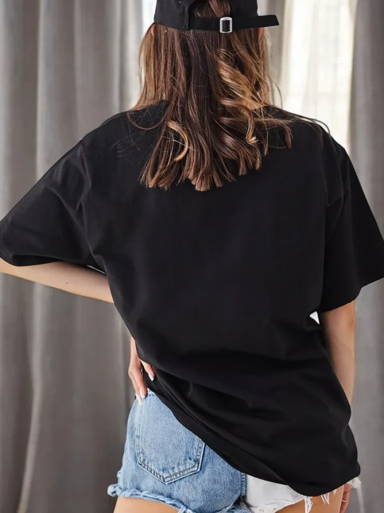 - Bawełniany damski t-shirt to lekka i wygodna propozycja na każdy dzień. Zainspirowany pozytywnym hasłem, idealny do casualowych stylizacji. Miękka tkanina zapewnia komfort, a minimalistyczny design sprawia, że pasuje do różnych outfitów.
