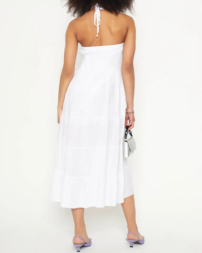 - Letnia spódnica damska o długości midi, wykonana z połączenia materiału bawełnianego i poliestrowego. Sukienka z podszewką, elastyczną talią i wiązaniem. UWAGA: Dokładność pomiaru (+/-) 1 cm.