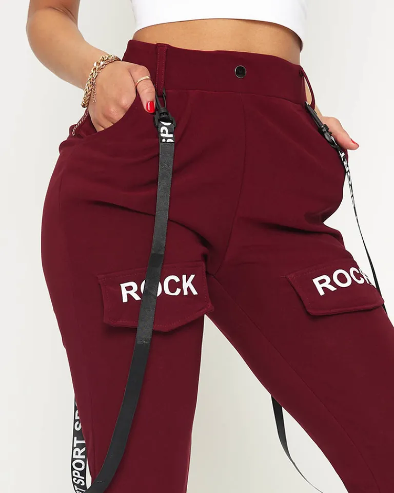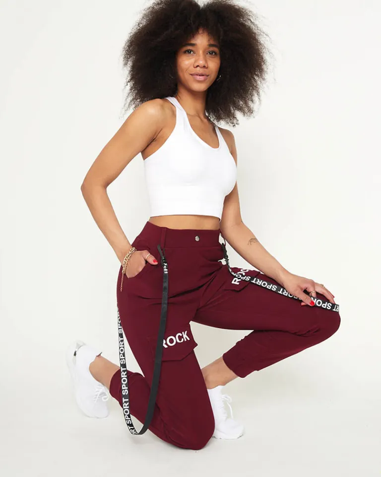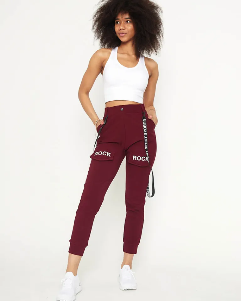 Best Bordowe damskie materiałowe spodnie typu bojówki z szelkami – Odzież Spodnie Cargo|Spodnie Dresowe