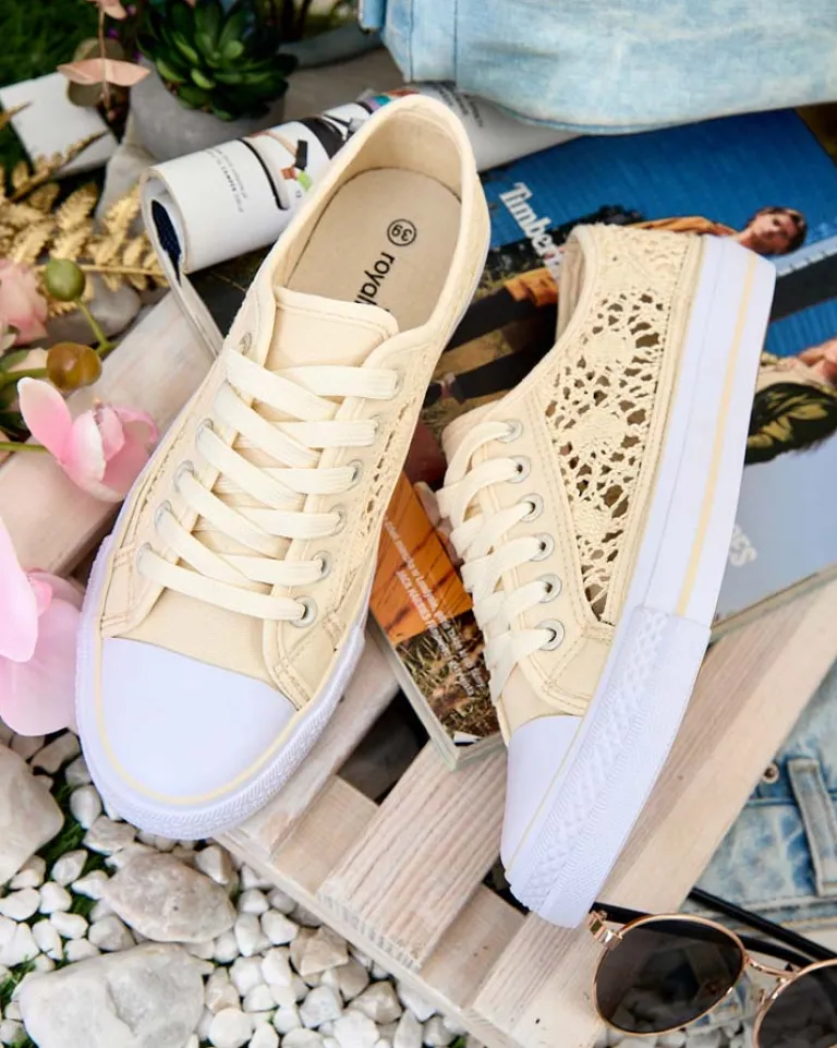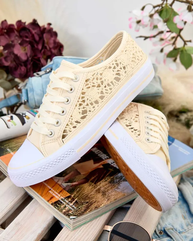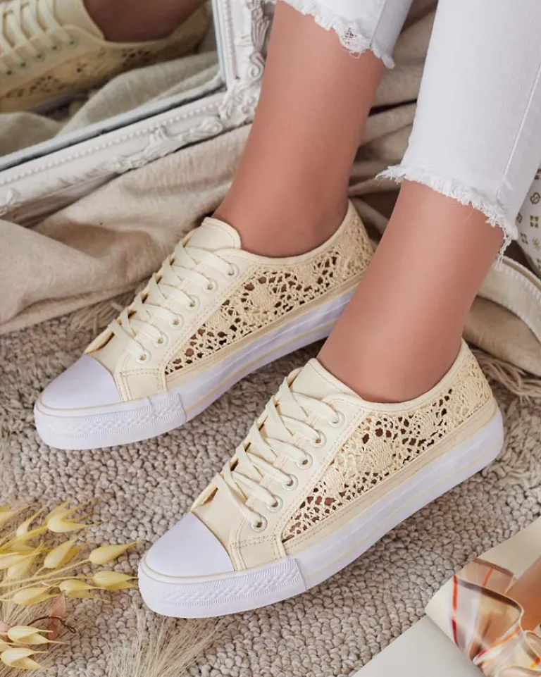 - Damskie buty na płaskiej podeszwie. Para w stylu casual jest wykonana z materiału tkaninowego z ażurowym wykończeniem, wkładka tkaninowa. Model posiada ozdobny haft. Idealne dla tych, którzy cenią komfort!