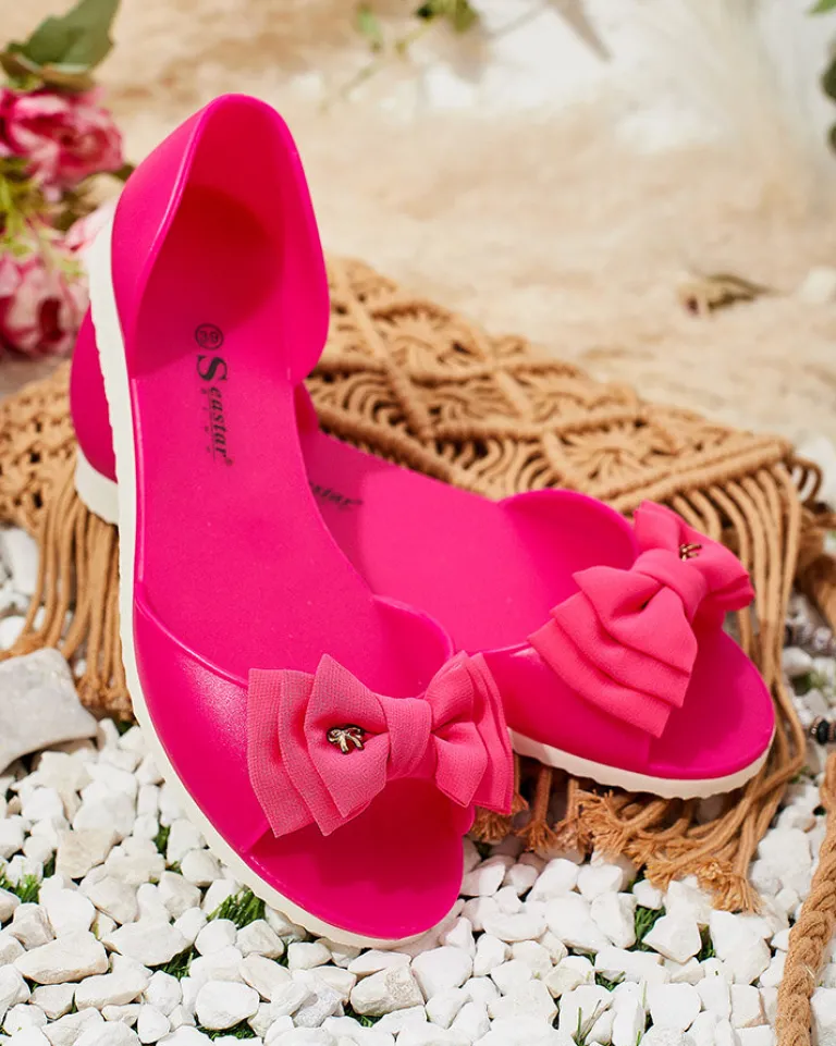- Wyjątkowe baleriny wykonane z materiału gumowego z odkrytym noskiem. Miękka podeszwa dostarczy komfortu na każdym kroku. Idealnie się sprawdzą do eleganckich i modnych stylizacji!
