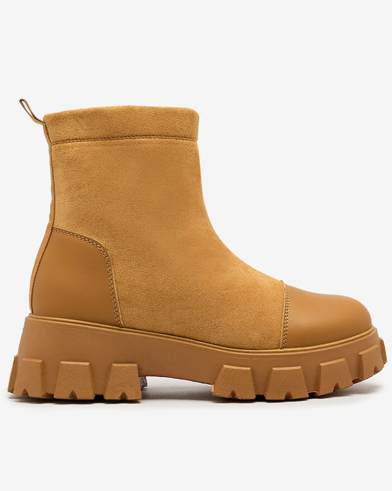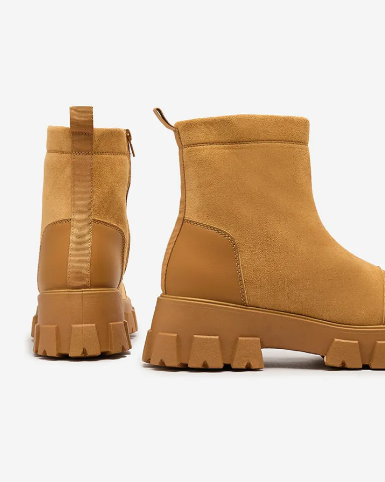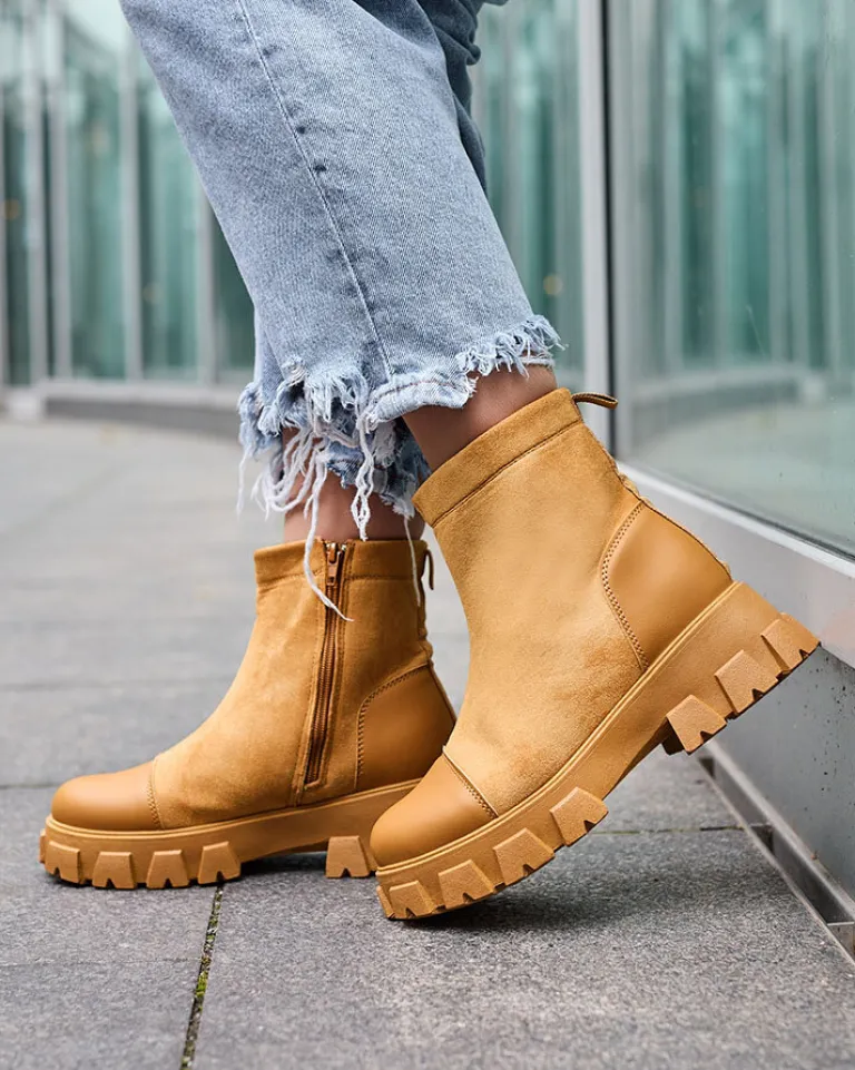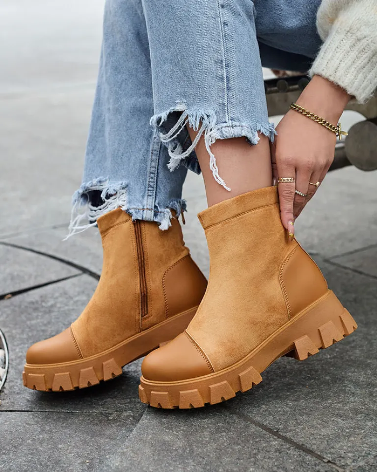 - Wyjątkowe botki damskie wykonane z połączenia skóry ekologicznej oraz eko zamszowej. Wkładka to eko skóra. Obuwie zapinane na zamek. Super dodatek do Twoich jesiennych outfitów!
