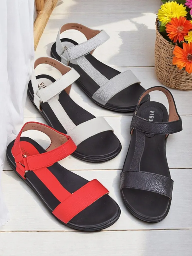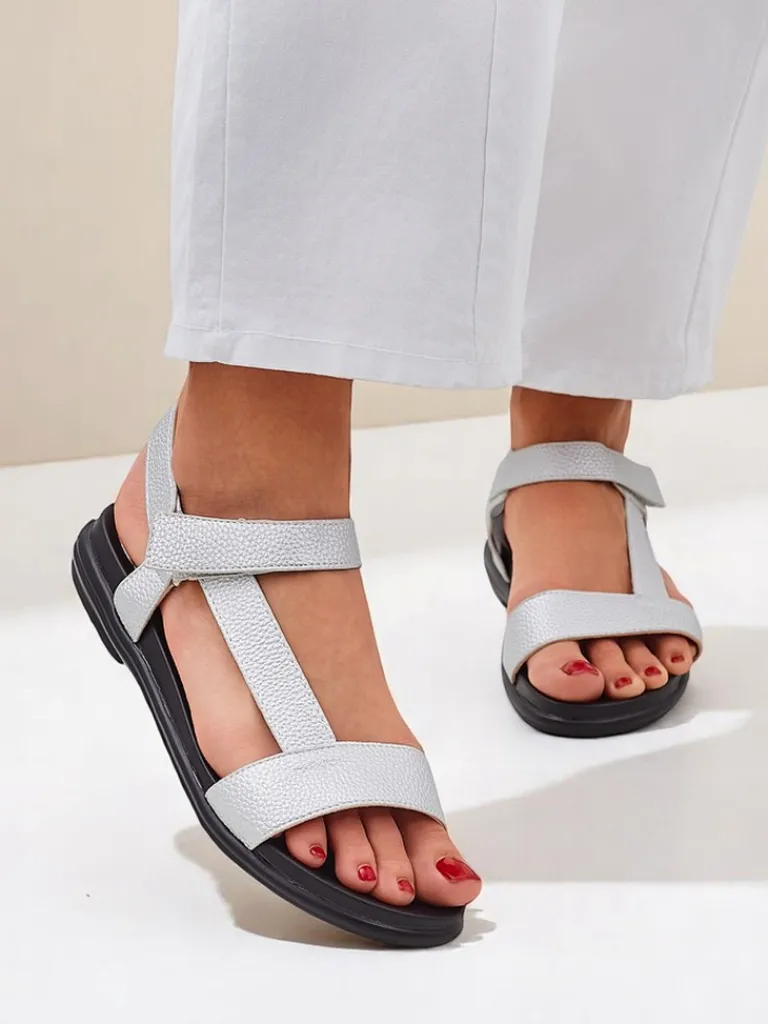 - Damskie sandałki na płaskiej podeszwie – to idealny pomysł na gorące letnie dni. Paseczki wykonane z przyjemnej skóry ekologicznej. Obuwie zapinane na rzep. Najlepsze na co dzień!