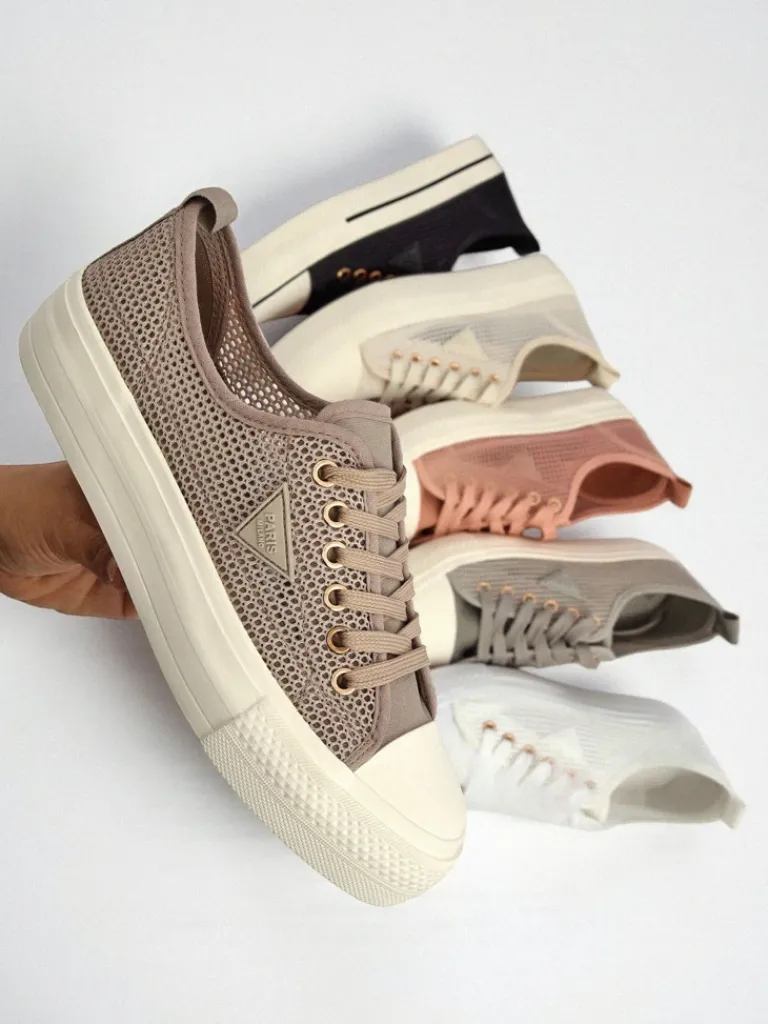 Best Damskie sneakersy Hypatia Mesh jasny brąz na lato płaska podeszwa 3cm Trampki