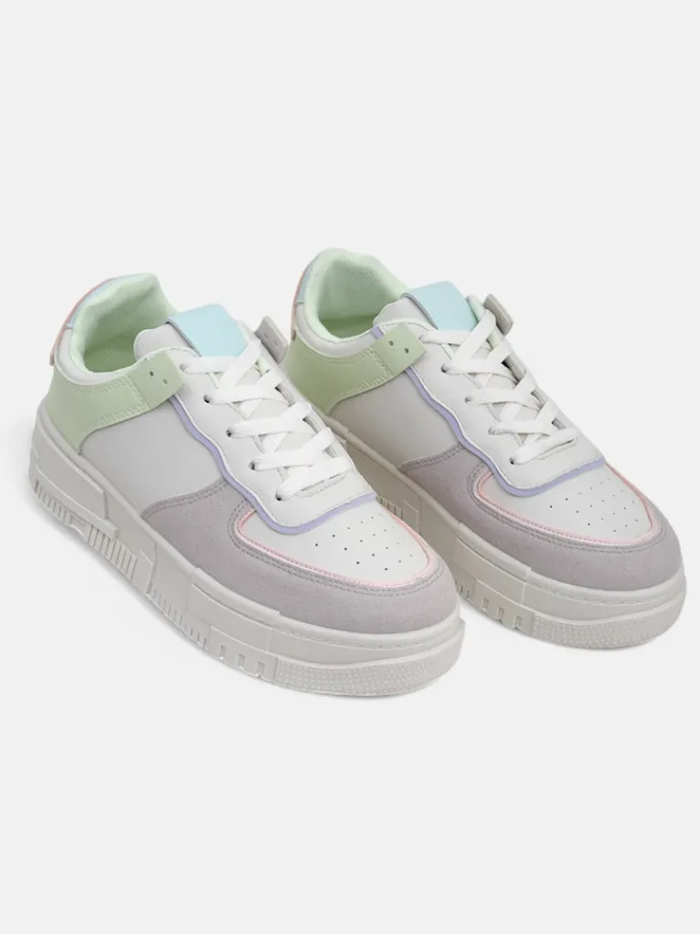 - Oryginalne sneakersy damskie na płaskiej podeszwie – perfekcyjne połączenie stylu i komfortu. Obuwie wykonane z eko skóry. Model sznurowany z tkaninową wkładką. Idealne dla aktywnych osób!