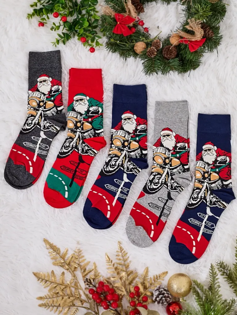 - Oryginalne męskie skarpety wykonane z elastycznej tkaniny bawełnianej wykończonej świątecznym wzorem. Ciepłe i wygodne – to doskonała propozycja na prezent!
