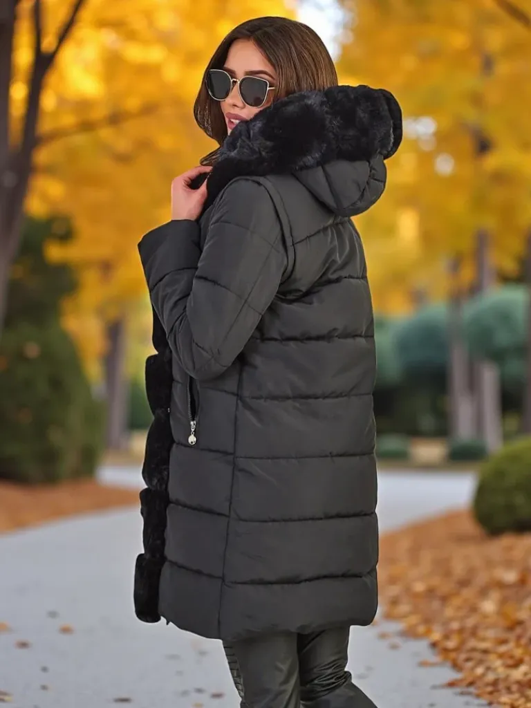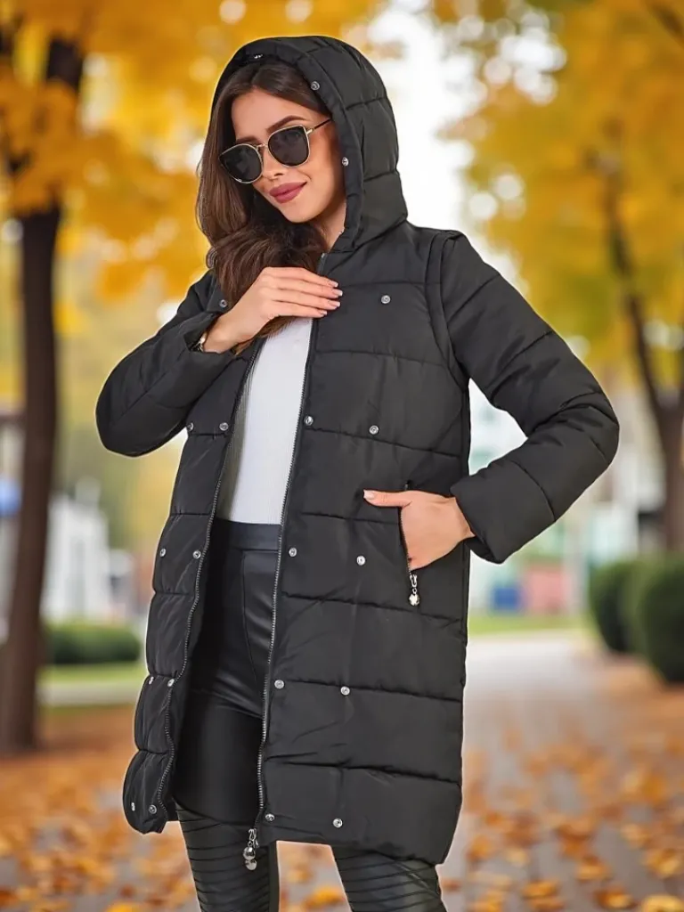 - Damska ocieplana kurtka zimowa z kapturem i futerkiem. Model zapinany suwakiem, posiada 2 kieszenie. Dodatkowo odpinane rękawy, co daje możliwość noszenia kurtki jako bezrękawnik. Idealna propozycja na chłodniejsze dni!