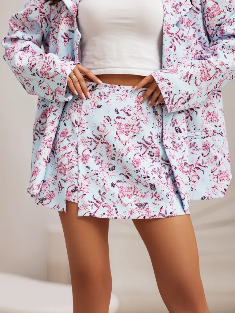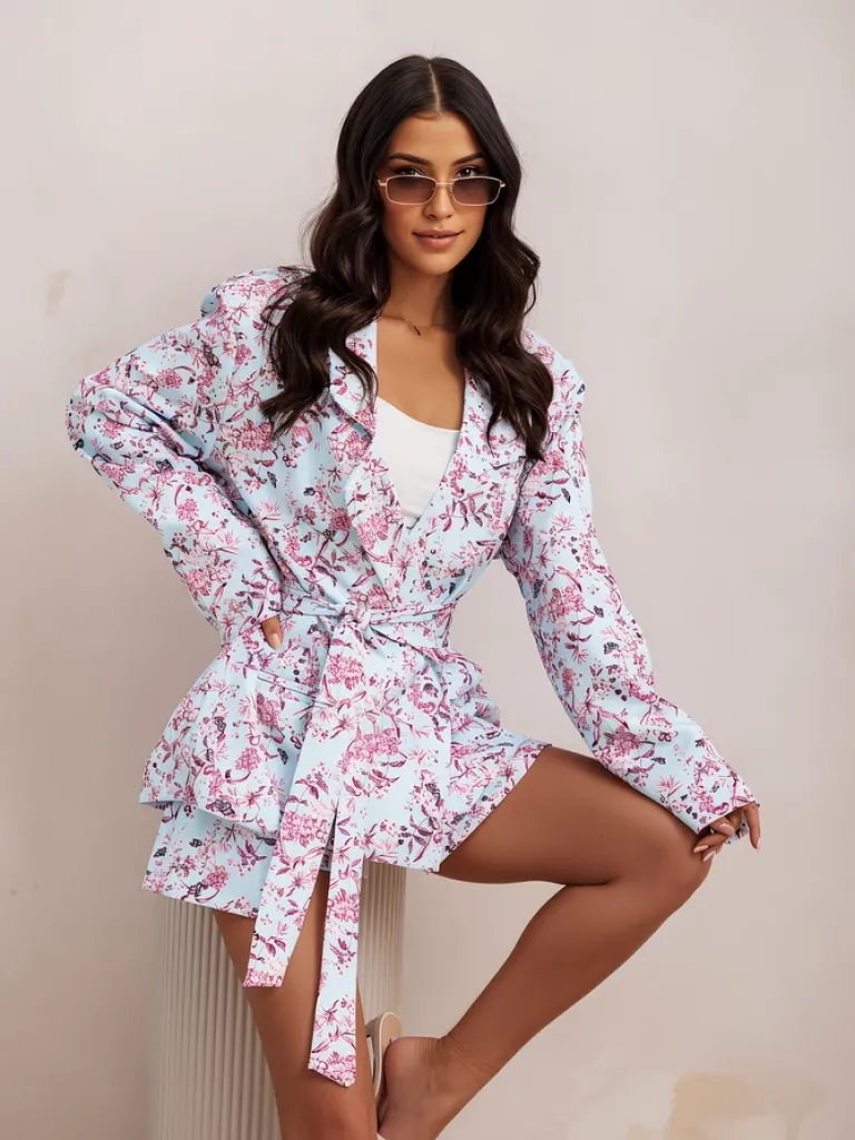 - Rewelacyjny damski komplet, którym zawrócisz w głowie na mieście! Krótkie spódnico- spodenki z zapięciem na zamek podkreślą Twoje nogi! Marynarka z wiązaniem w pasie i długimi rękawami podkreśli kobiecą sylwetkę! Must have Twojej szafy!