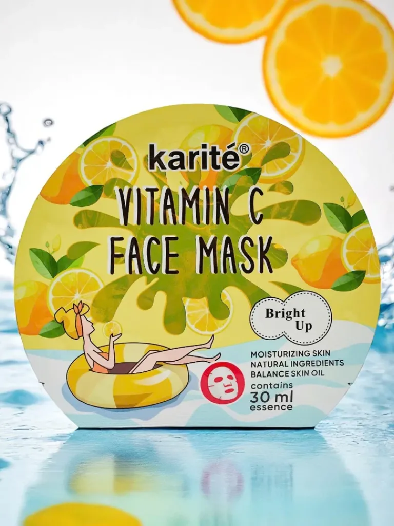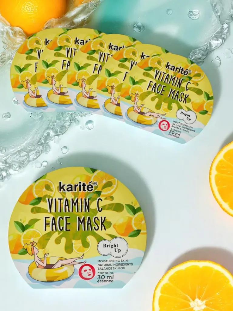 - Rozświetlająca maseczka do twarzy w płachcie z witaminą C poprawia koloryt skóry, dodaje blasku i redukuje oznaki zmęczenia. Skutecznie odświeża cerę, nadając jej promienny i zdrowy wygląd. Idealna do cery matowej i poszarzałej.
