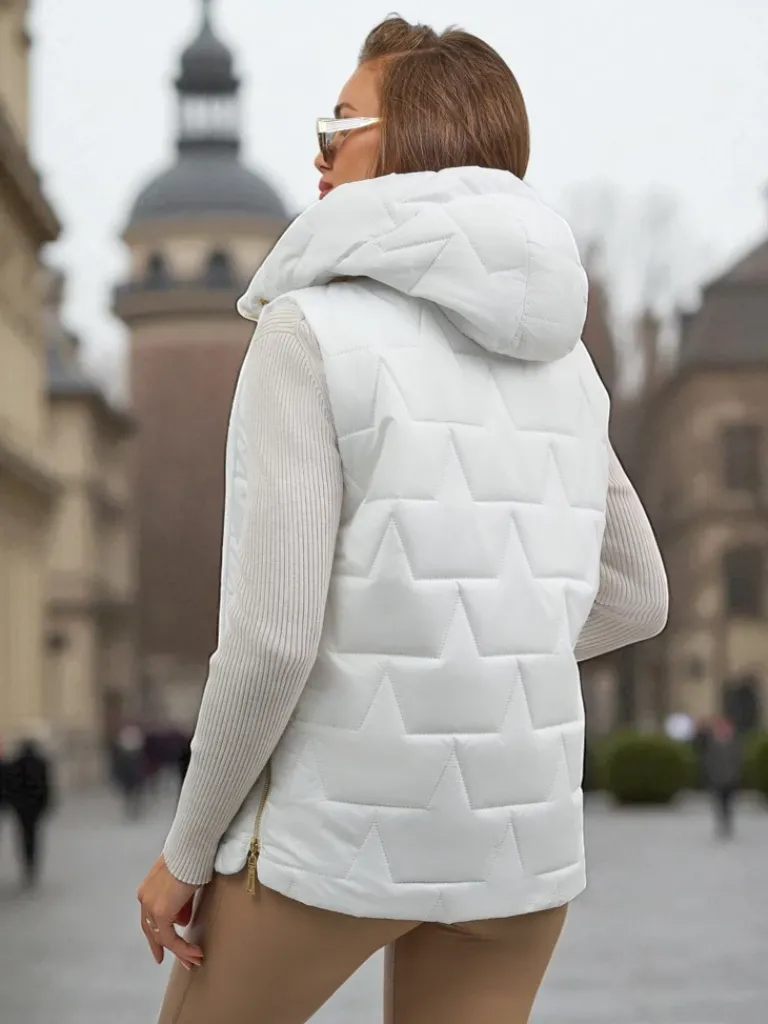 - Rewelacyjna pikowana kamizelka damska. Bezrękawnik zapinany suwakiem, posiada kaptur i 2 kieszenie. Dodatkowo suwaki po bokach. Produkt z wypełnieniem syntetycznym. Świetne dopełnienie jesiennych stylizacji! UWAGA: Dokładność pomiaru (+/-) 1 cm.