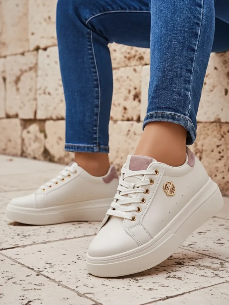 - Sneakersy damskie na platformie – perfekcyjne połączenie stylu i komfortu. Obuwie wykonane z eko skóry. Model sznurowany, posiada tkaninową wkładkę. Idealne dla aktywnych osób!