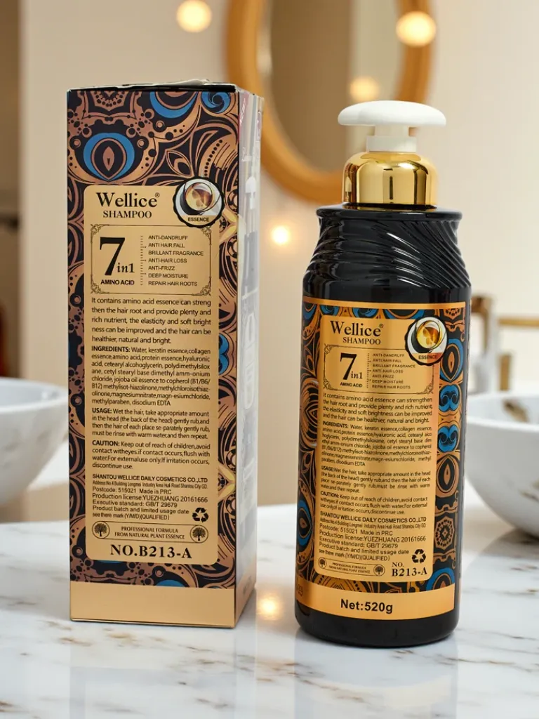 - Wellice Szampon 7 w 1 do włosów zniszczonych i suchych z aminokwasami intensywnie odbudowuje, nawilża i wzmacnia włosy. Redukuje łamliwość, nadaje blask, wygładza i ułatwia rozczesywanie, pozostawiając włosy miękkie i zdrowe.