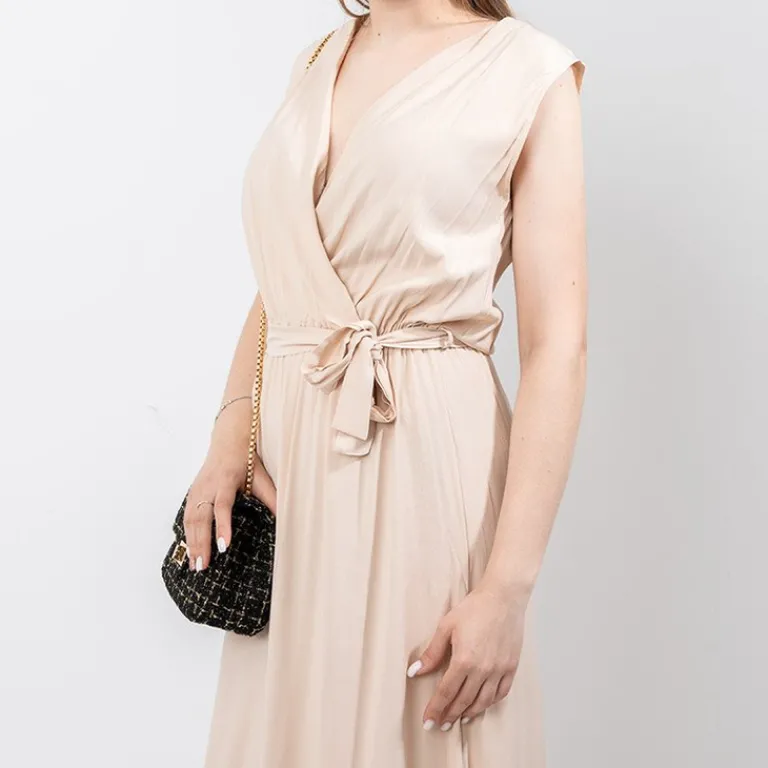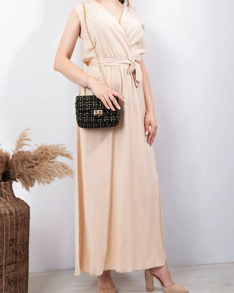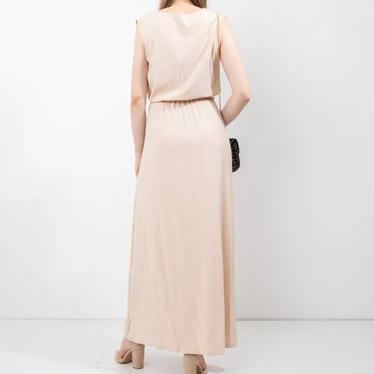 Clearance Beżowa damska maxi sukienka – Odzież Sukienki Letnie|Sukienki Długie