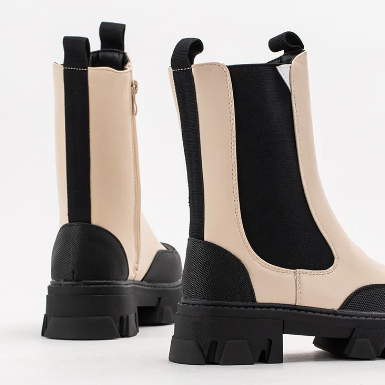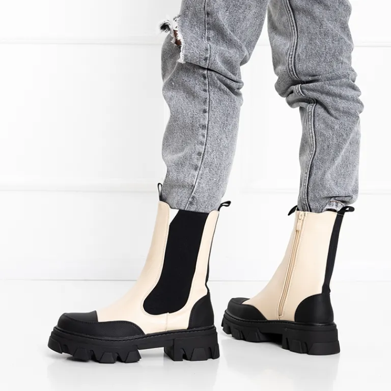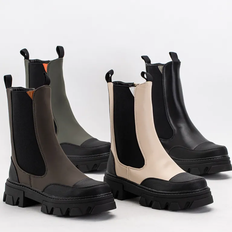 - Wyjątkowe damskie botki a’la workery na masywnej podeszwie, wykonane ze skóry ekologicznej matowej. Model jest zapinany na suwaki po bokach i ocieplany delikatnym futerkiem.