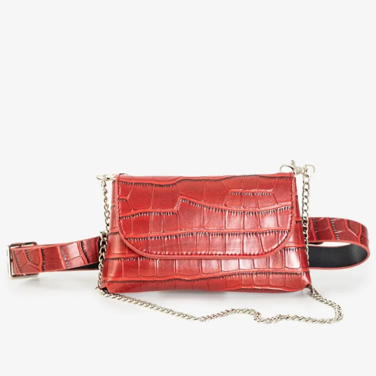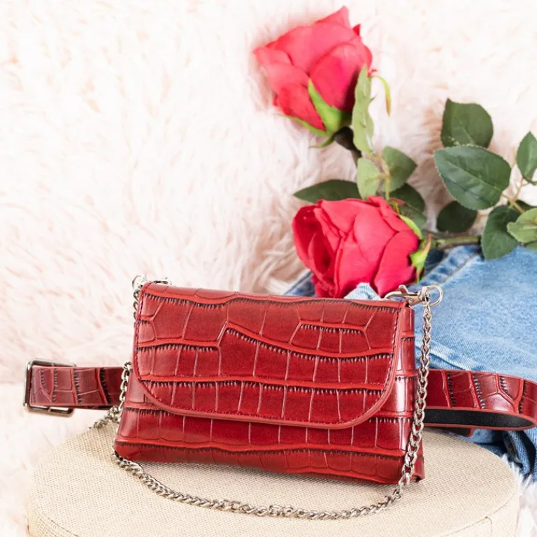 - Mała torebka damska na srebrnym łańcuszku, wykonana z eko-skóry i wykończona zwierzęcym tłoczeniem. Posiada dodatkowy cieńszy łańcuszek i paseczek z regulacją na którym można zawiesić torebkę i nosić ją w pasie.