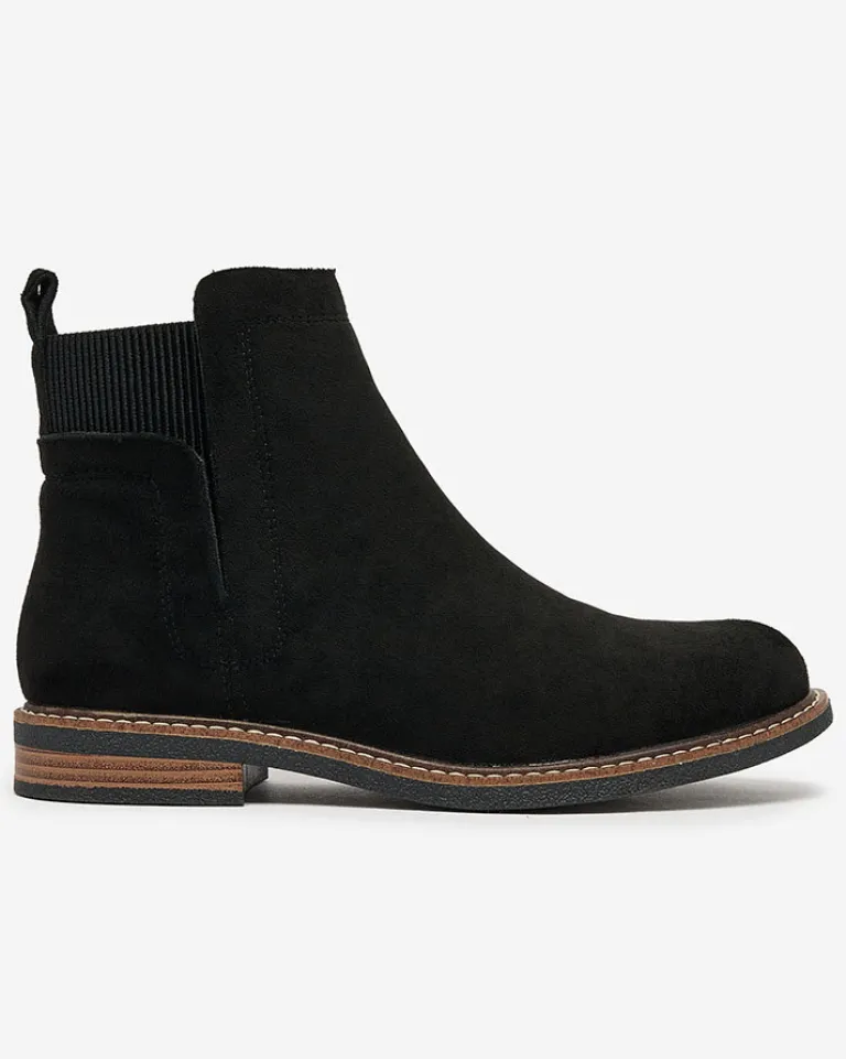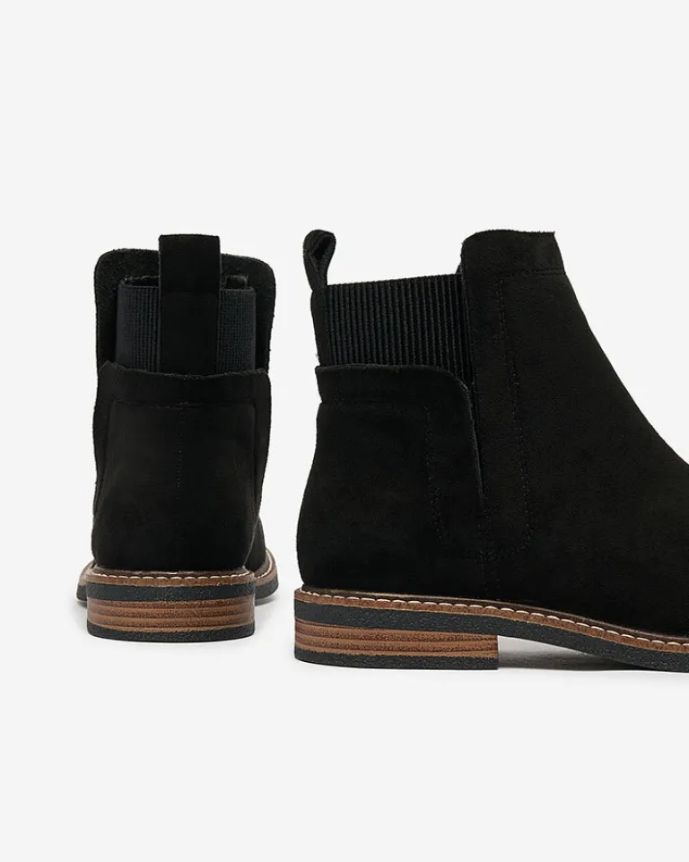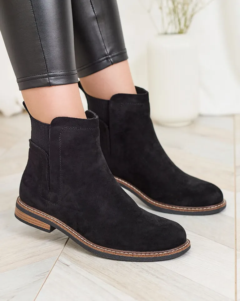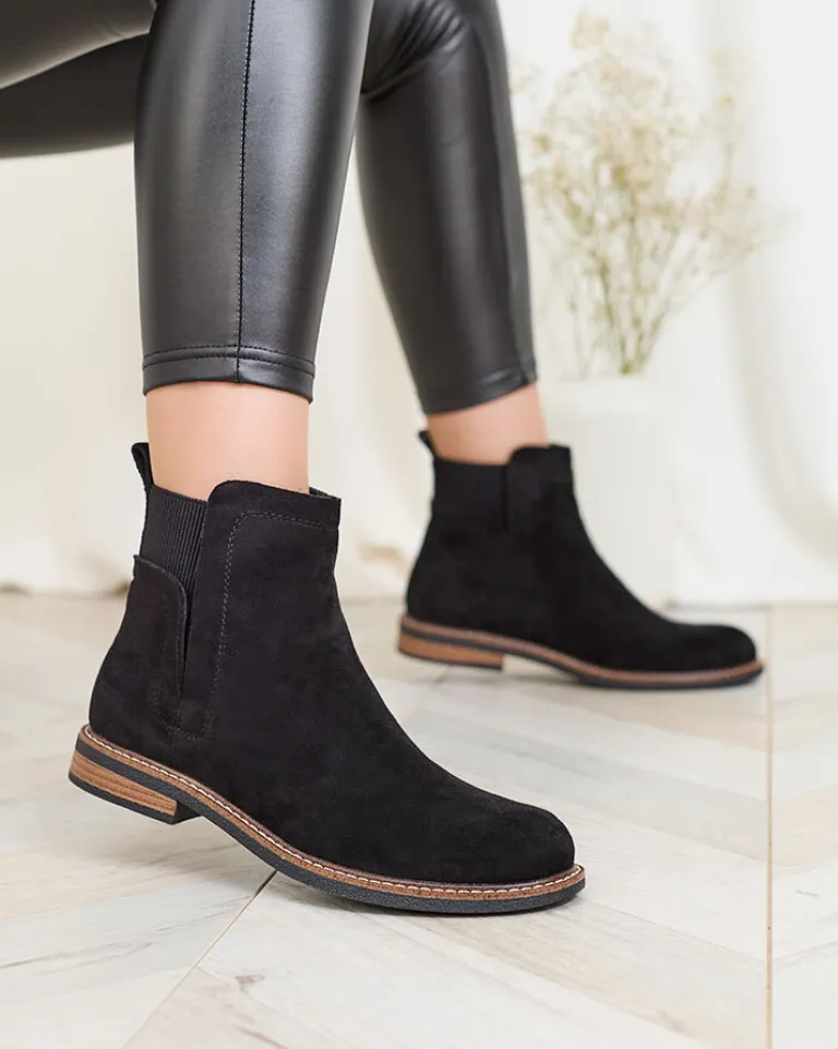 - Piękne i klasyczne botki a’la sztyblety na płaskim obcasie wykonane ze skóry zamszowej ekologicznej. W środku wypełnienie tkaninowe. Super baza do jesiennych stylizacji!