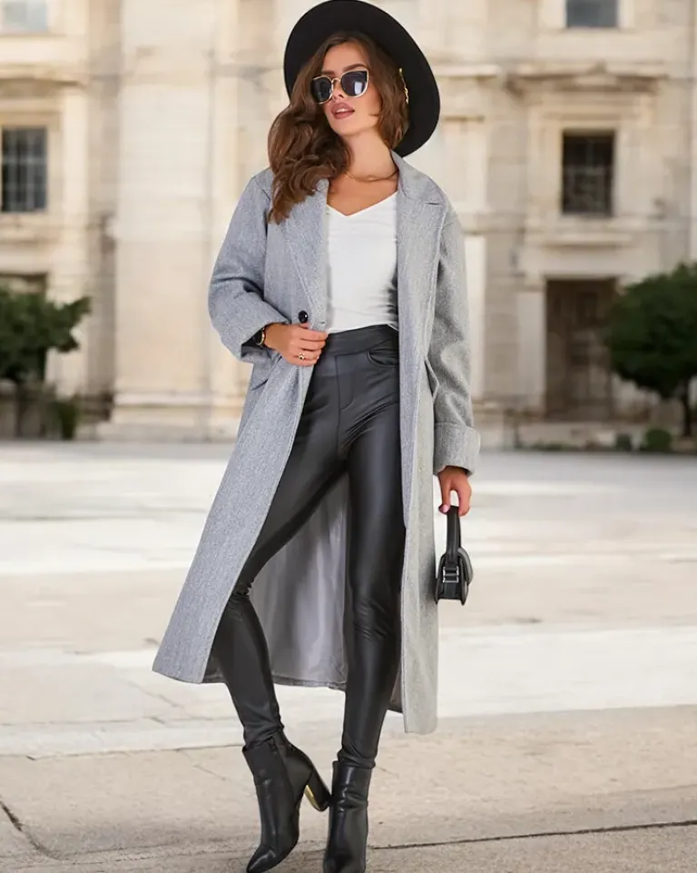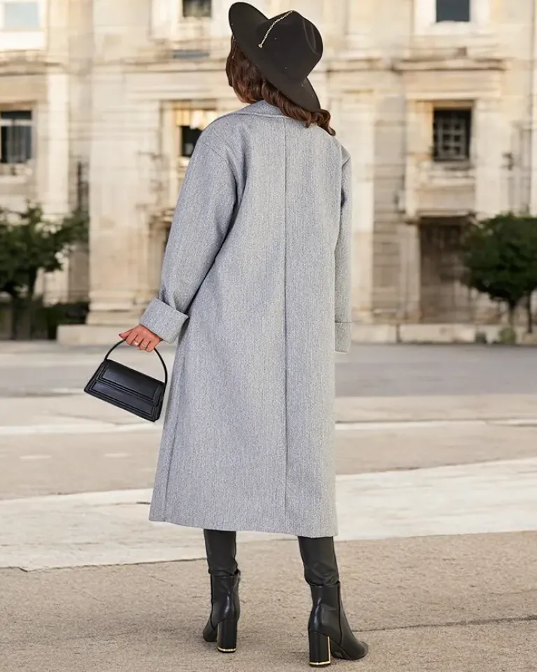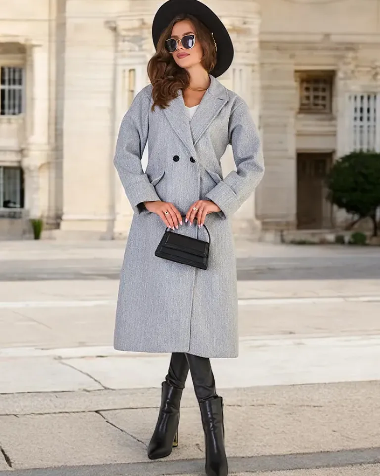 - Długi damski płaszcz z przyjemnego materiału. Model posiada długie rękawy i zapięcie na guziki. Posiada podszewkę. Idealna propozycja na jesień! UWAGA: Dokładność pomiaru (+/-) 1 cm. Wymiary mierzone na płasko.