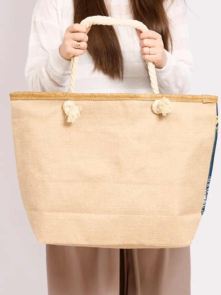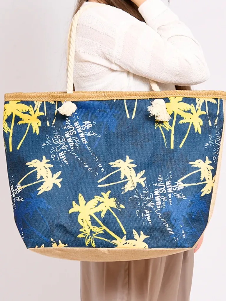 - Stylowa torba materiałowa wykończona printem. Torebka z dłuższymi rączkami, zapinana na zamek, w środku posiada 1 kieszonkę. Nada się świetnie na plażę!
