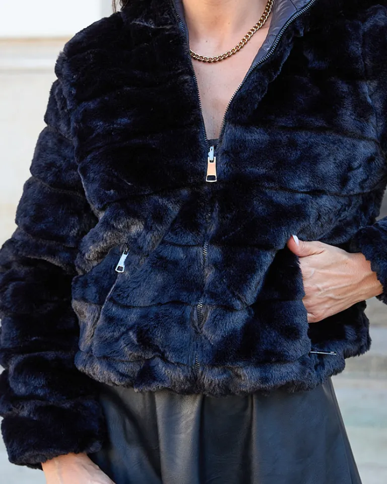 - Rewelacyjna dwustronna kurtka damska wykonana ze śliskiej tkaniny i przyjemnego, miękkiego materiału a’la futerko. Kurtka posiada delikatne wypełnienie syntetyczne. Model z kapturem, 2 zasuwanymi kieszeniami oraz zapięciem na suwak. Hit tego sezonu!