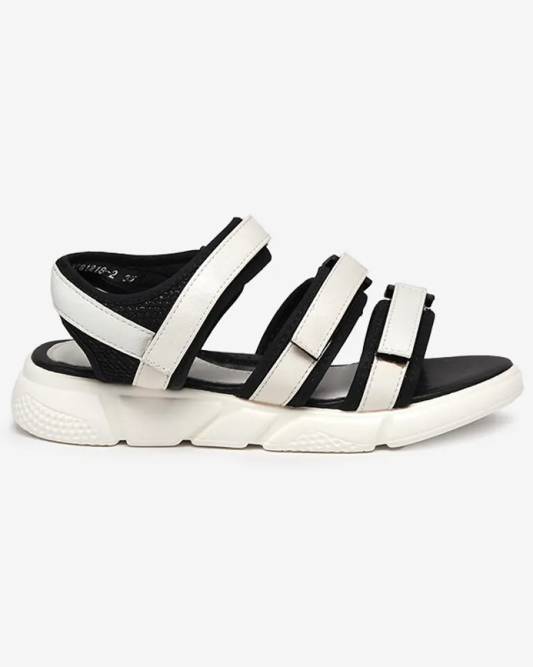 - Klasyczne dziewczęce sandałki wykonane ze skóry ekologicznej z błyszczącym wykończeniem. Wkładka również eko skórzana. Szerokość obuwia można regulować za pomocą rzep. Doskonale sprawdzą się na co dzień!