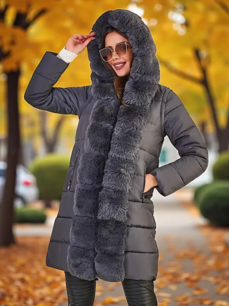 - Damska ocieplana kurtka zimowa z kapturem i futerkiem. Model zapinany suwakiem, posiada 2 kieszenie. Dodatkowo odpinane rękawy, co daje możliwość noszenia kurtki jako bezrękawnik. Idealna propozycja na chłodniejsze dni!