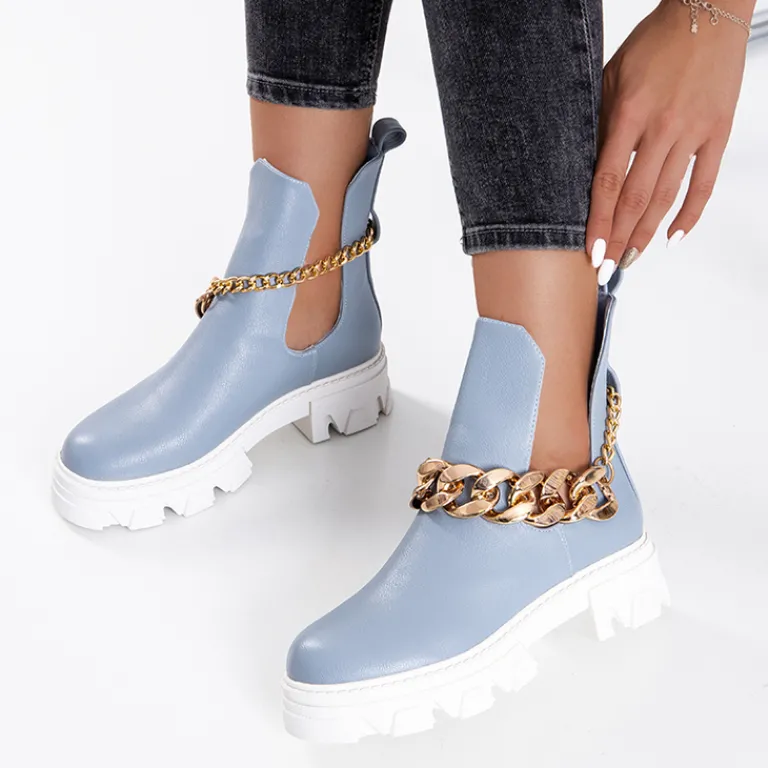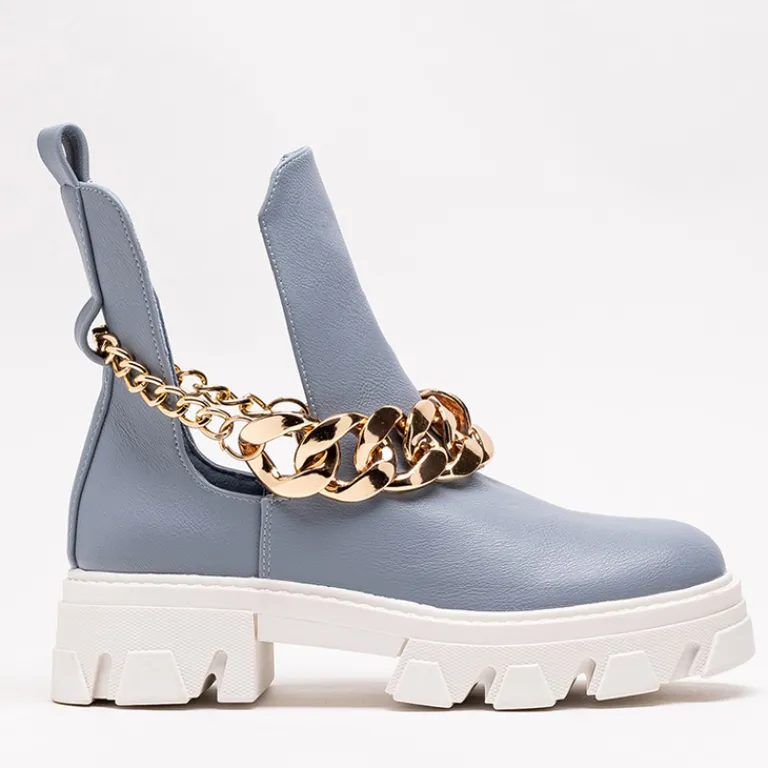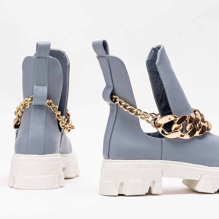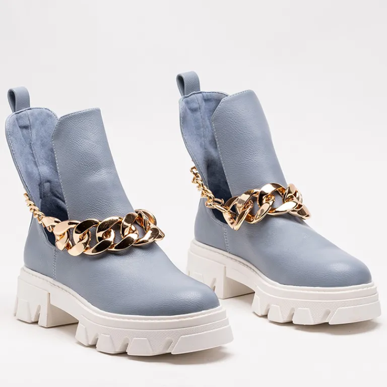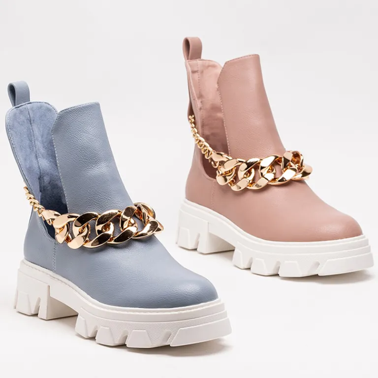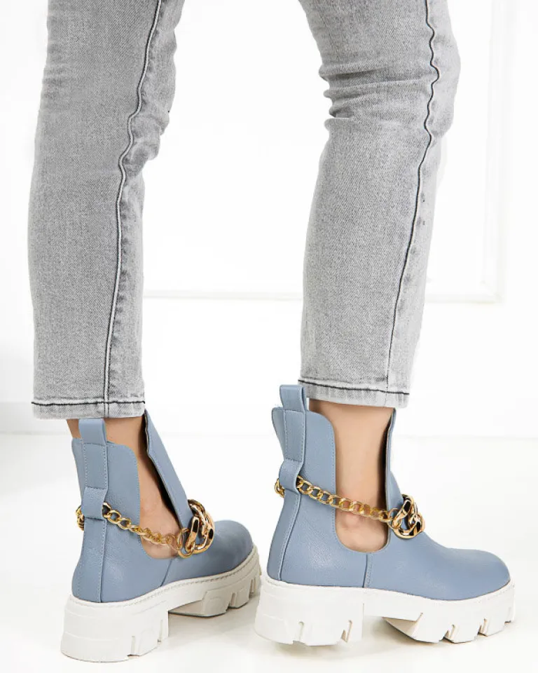 - Stylowe damskie botki z metalowym łańcuszkiem, na masywnej podeszwie. Cholewka z wycięciami wykonana ze skóry ekologicznej, wkładka to również skóra ekologiczna. Nadają się do wielu oryginalnych stylizacji.
