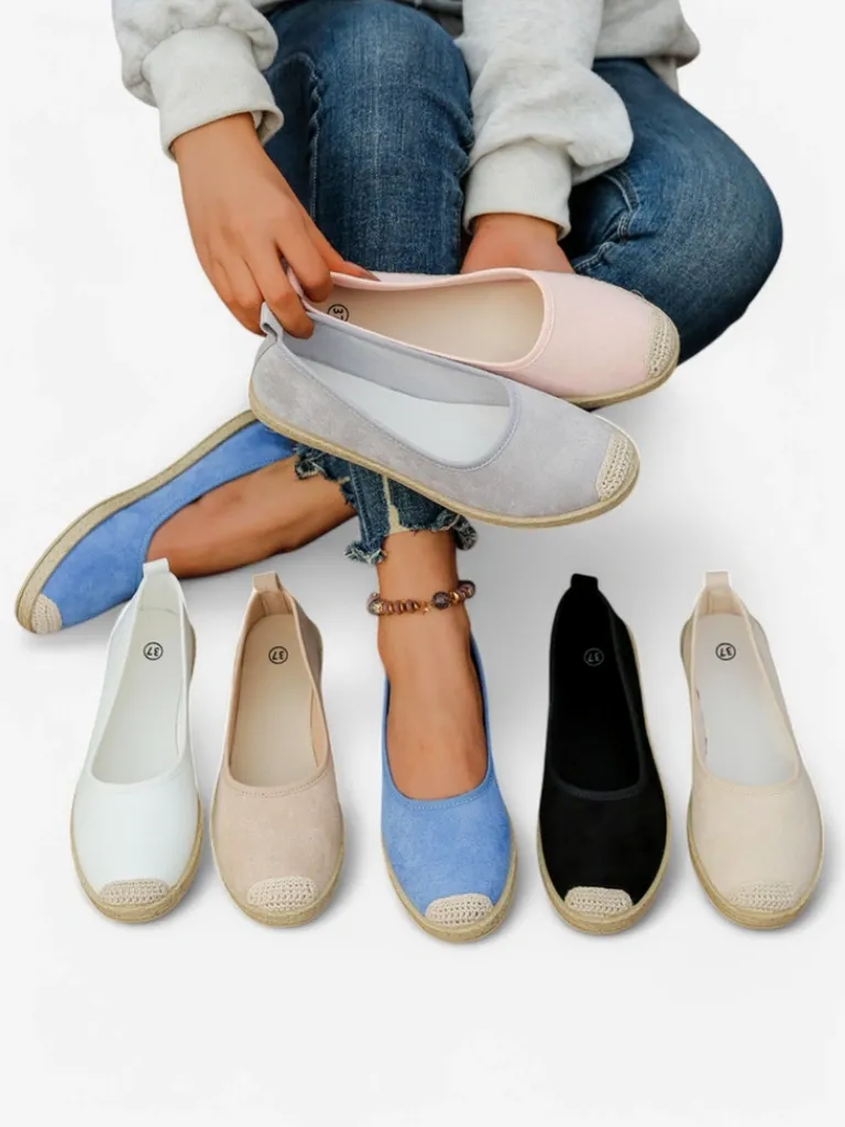 - Wyjątkowe damskie espadryle wykonane z eko zamszu oraz tkaninowej wkładki. Płaska podeszwa zdobiona sznurkiem jutowym zapewnia wygodę. Model wsuwany. Doskonały dodatek do letnich stylówek!