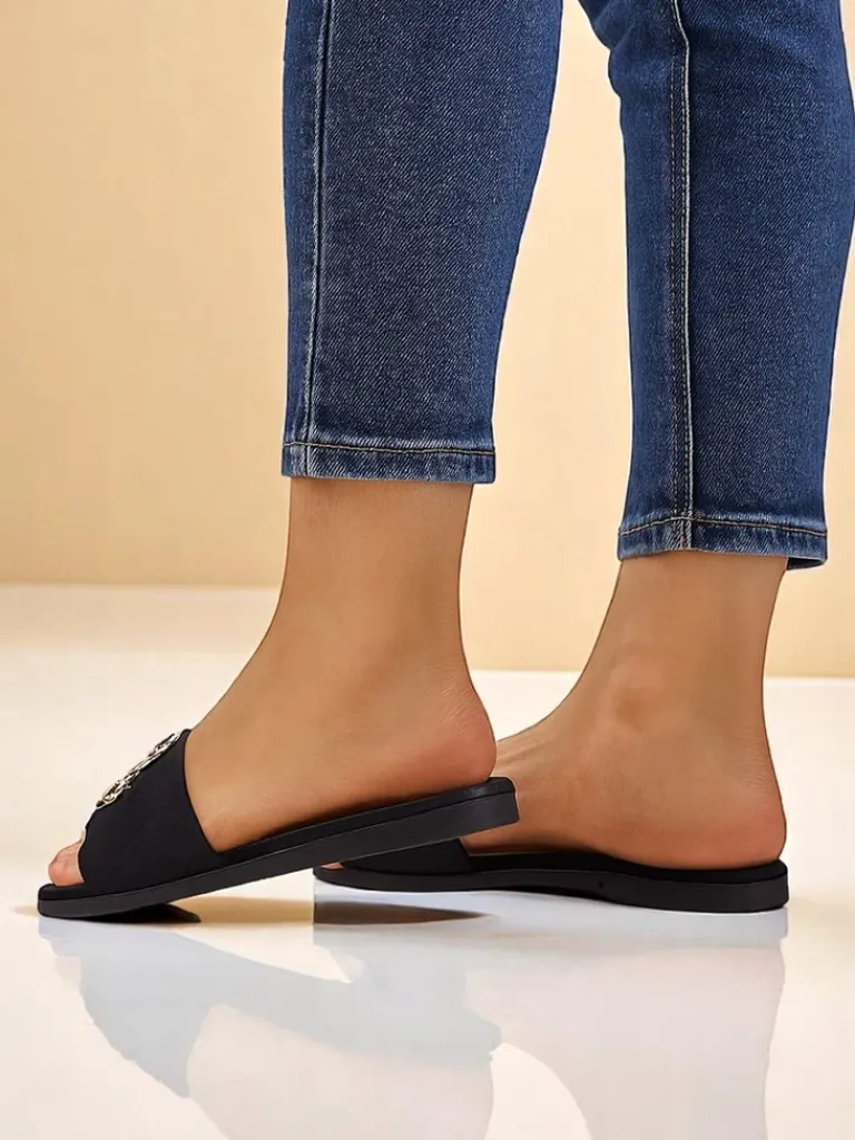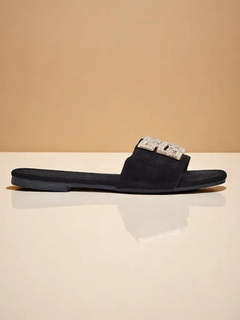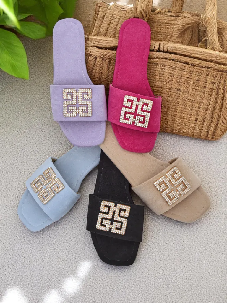- Świetne damskie klapki na płaskiej podeszwie. Wykonane z ekologicznej skóry zamszowej. Posiadają na cholewce ozdobę. Idealny wybór na co dzień!