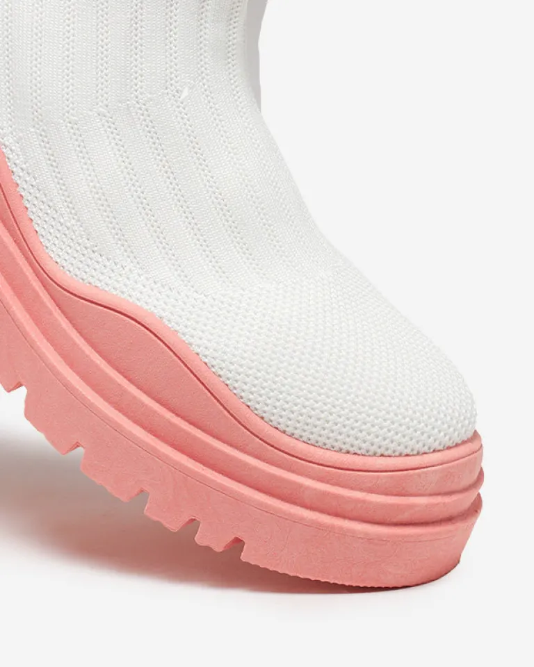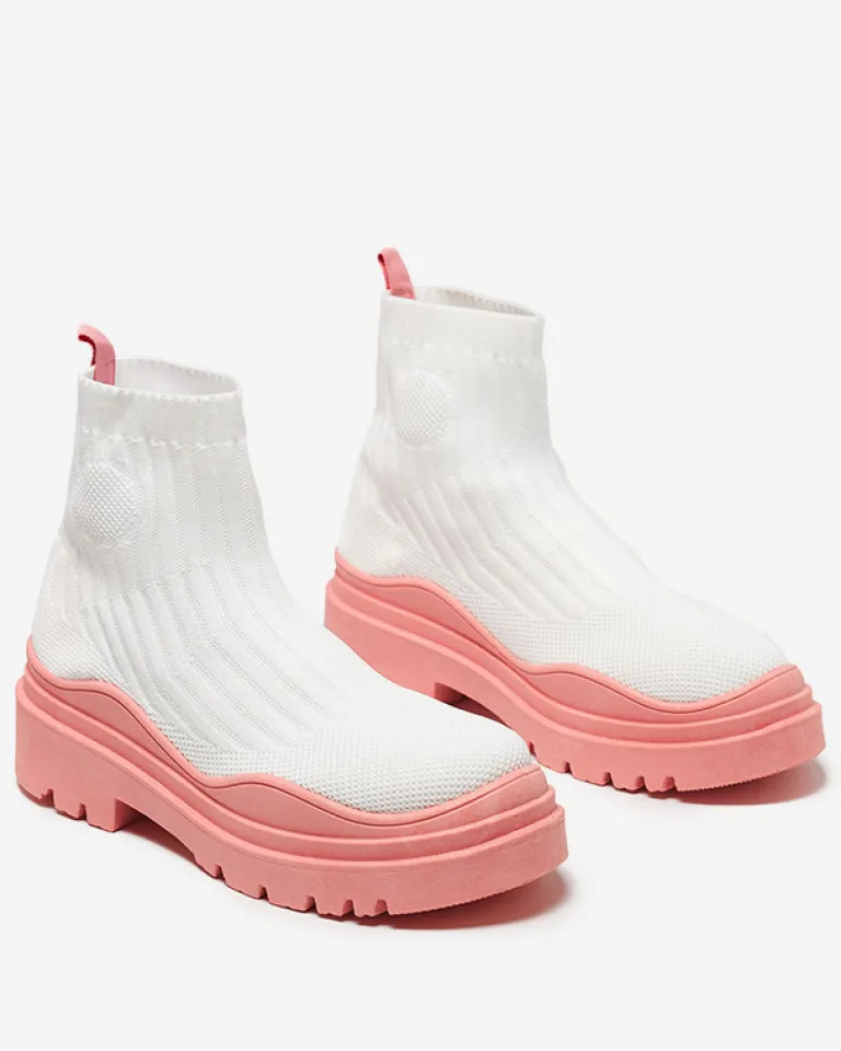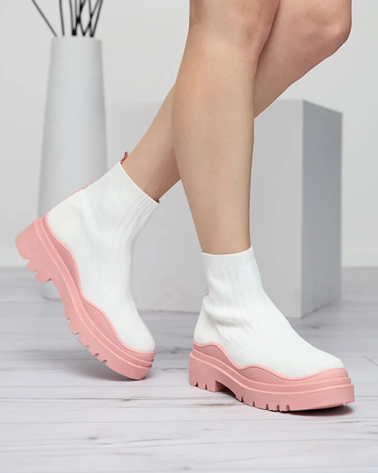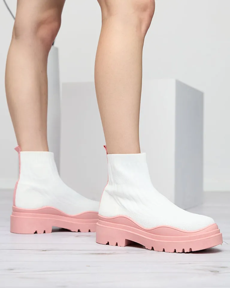 - Oryginalne damskie wsuwane botki wykonane z elastycznego materiału tkaninowego. Model na masywnej gumowej podeszwie, posiada wnętrze wyłożone tkaniną. Idealna baza dla wielu codziennych looków! BIAŁO- RÓŻOWE BUTY BOTKI DAMSKIE NIEOCIEPLANE KORILCO