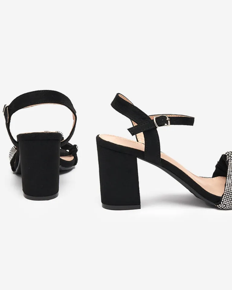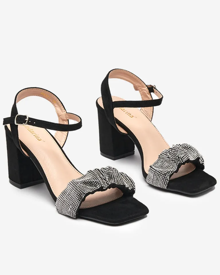 Discount Czarne damskie sandałki na słupku z cyrkoniami Triesta Buty Na Wielkie Wyjście|Sandały Na Słupku