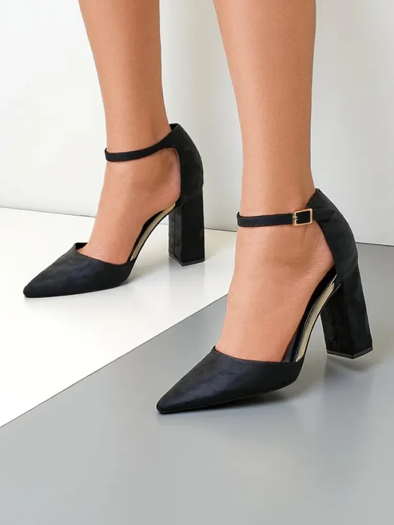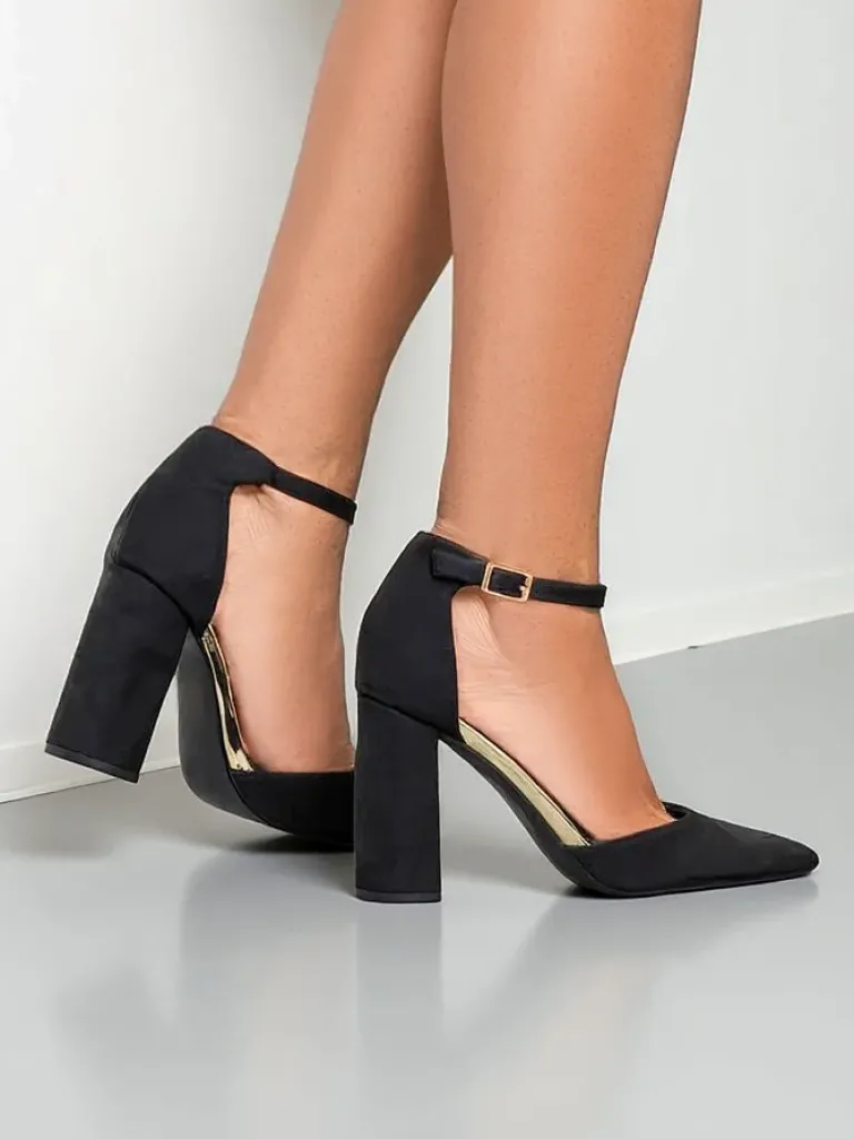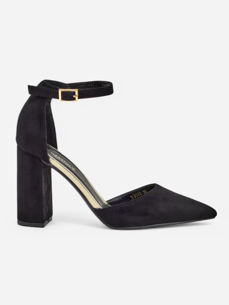 - Eleganckie damskie czółenka na słupku, wykonane ze skóry ekologicznej zamszowej. Środek buta jest wyłożony skórą ekologiczną, a nosek w szpic nadaje elegancji!